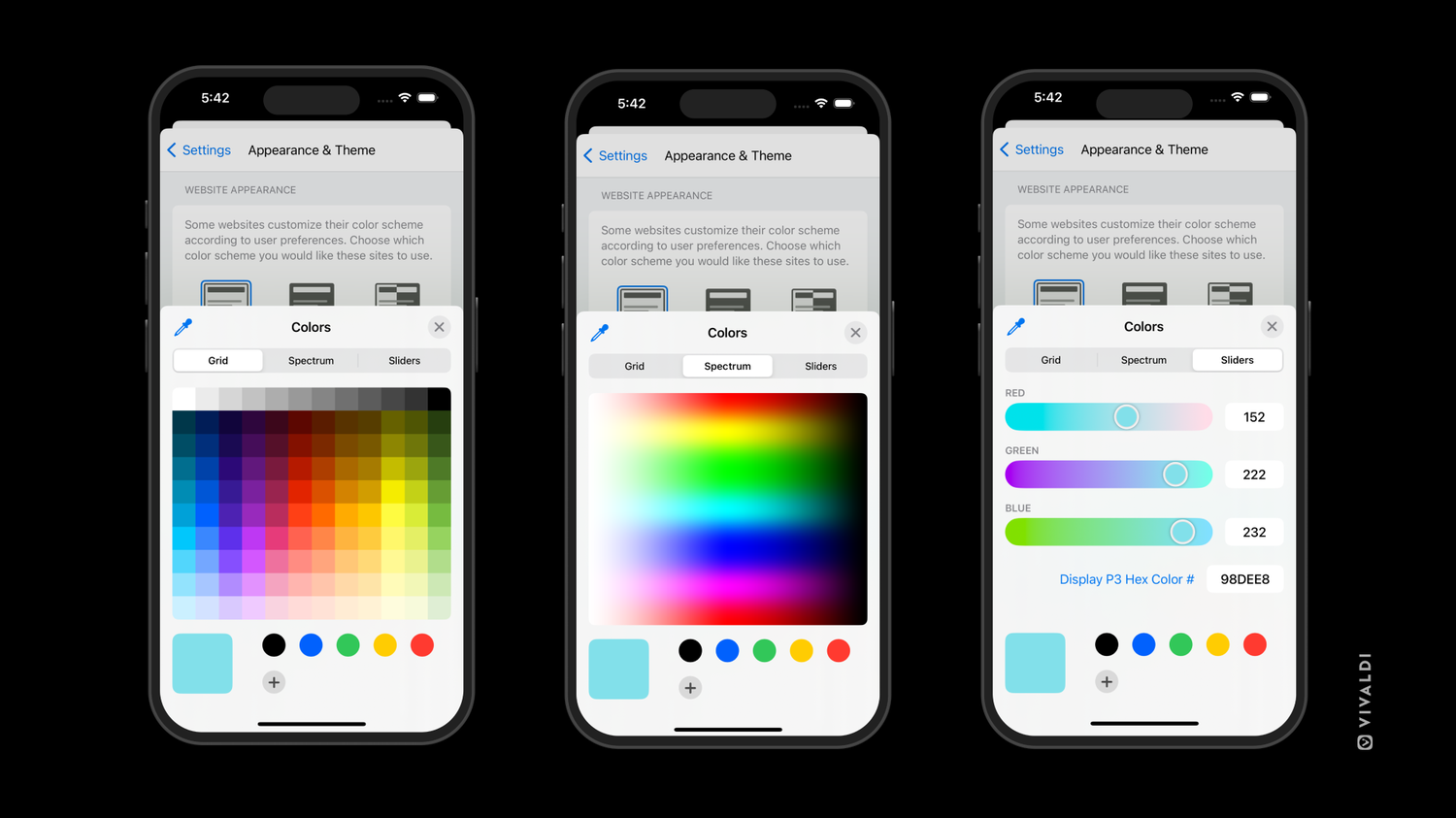Теперь персонализировать мобильный Vivaldi стало проще. Разработчики добавили красочные темы в Vivaldi на iPhone и iPad, благодаря которым браузер будет лучше соответствовать вашим эстетическим предпочтениям. Ищете ли вы темную, светлую или красочную тему, в Vivaldi каждый найдет что-то для себя.
