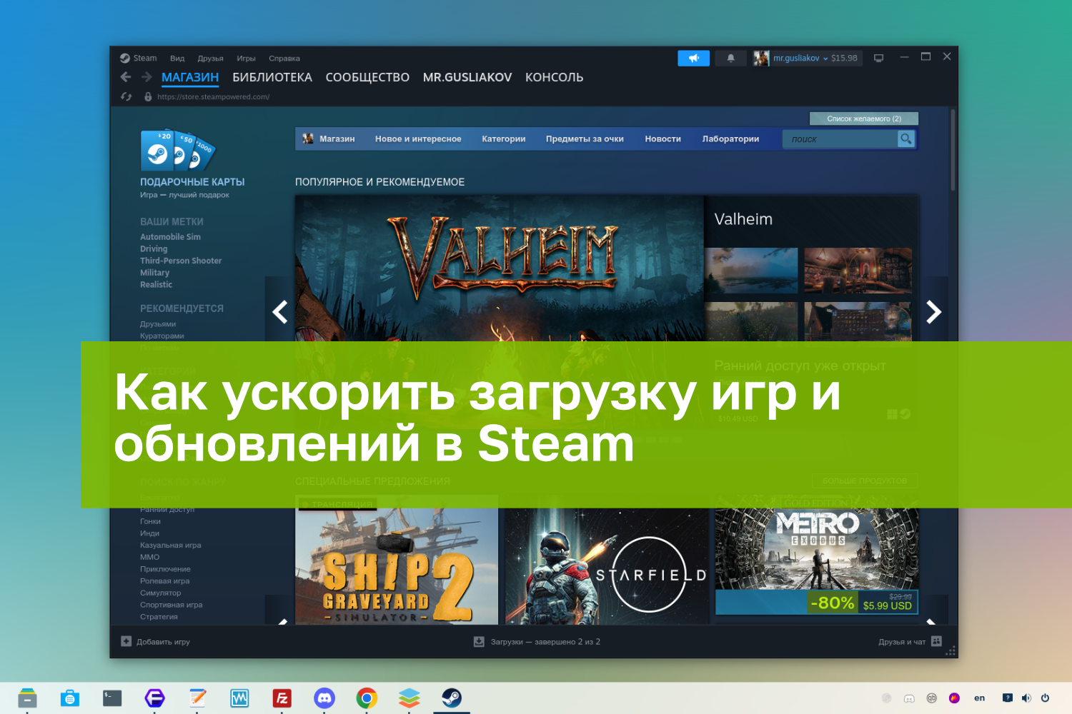 - Инструкция: Как ускорить загрузку игр и обновлений в Steam. Простые шаги для значительного повышения скорости загрузки игр и обновлений в Steam: отключение HTTP2 и увеличение количество соединений.
