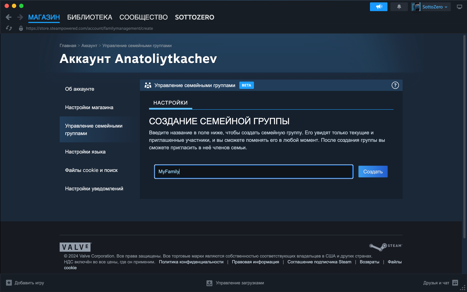 Чтобы создать семейную группу Steam, перейдите в Об аккаунте (под именем вашего профиля) > раздел Управление семейными группами > Создать семейную группу. Дайте своей семье имя, выберите Пригласить участника и добавьте нужных участников. Вам будет предложено выбрать, следует ли добавлять участников в качестве взрослого или ребенка.