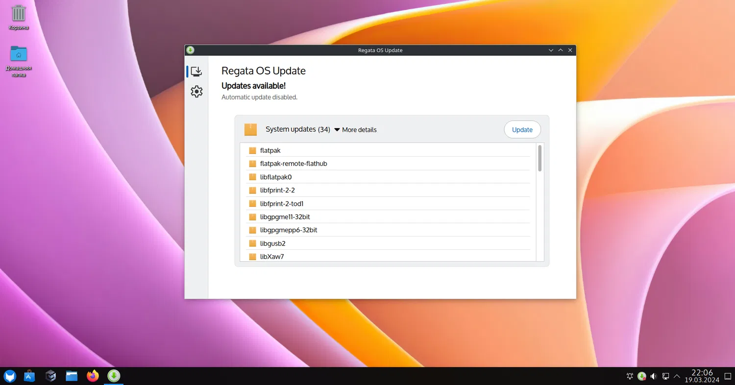Обновиться до новой версии можно через приложение Regata OS Update, либо скачать ISO-образ с официального сайта: