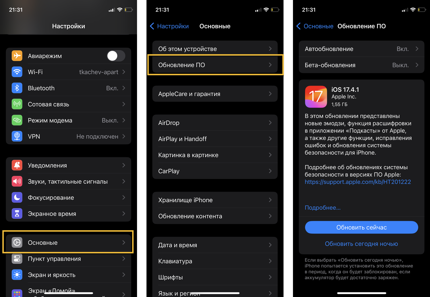 Подробнее об обновлениях системы безопасности в версиях ПО Apple: