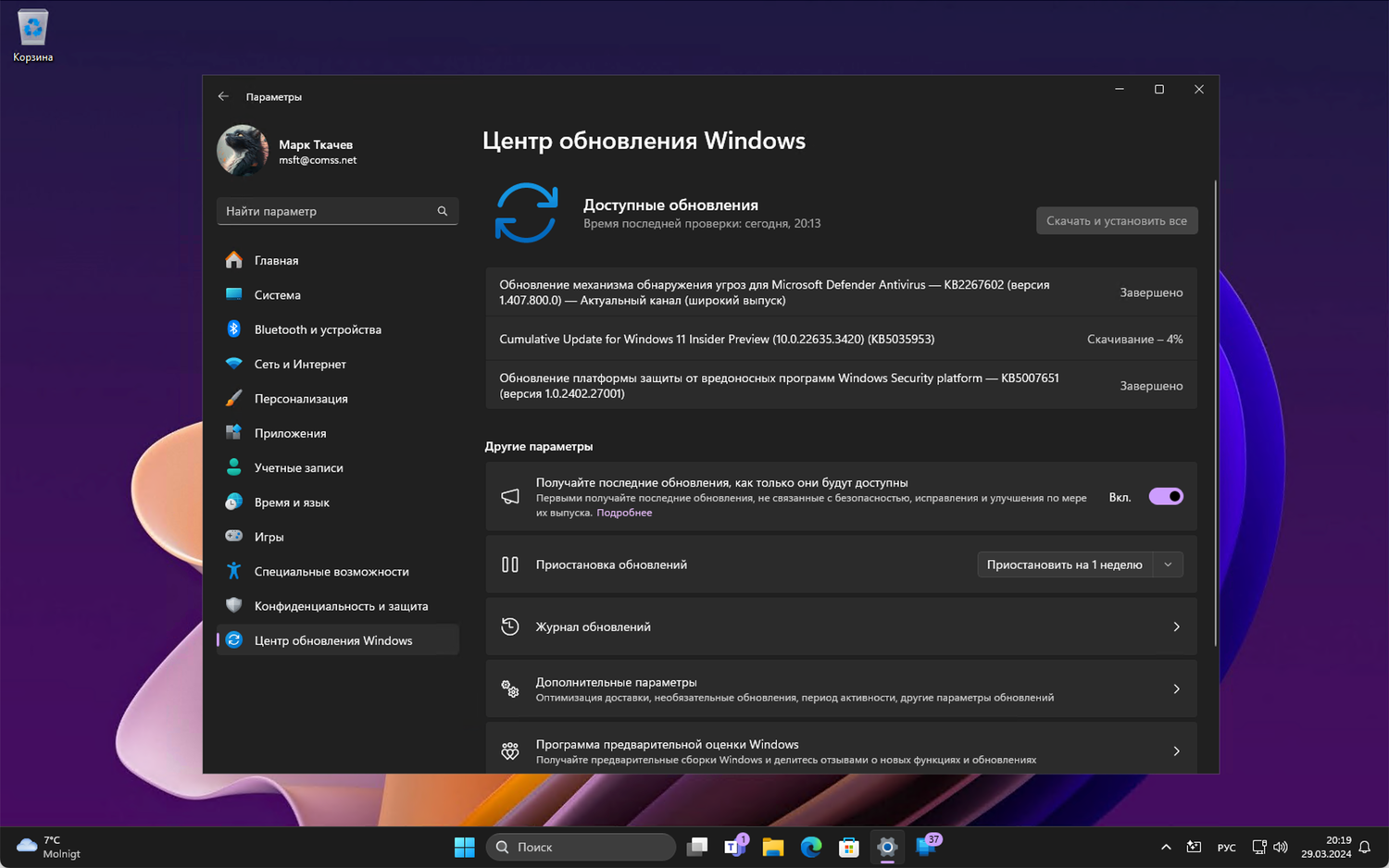 Примечание. Microsoft заблокировала установку обновлений для инсайдеров Windows 11 в России и Беларуси. Для установки Windows 11, Версия 23H2 (Сборка ОС 22635.3420) вы можете использовать наши DNS-серверы: Установка инсайдерских сборок Windows 11 с помощью Comss.one DNS.