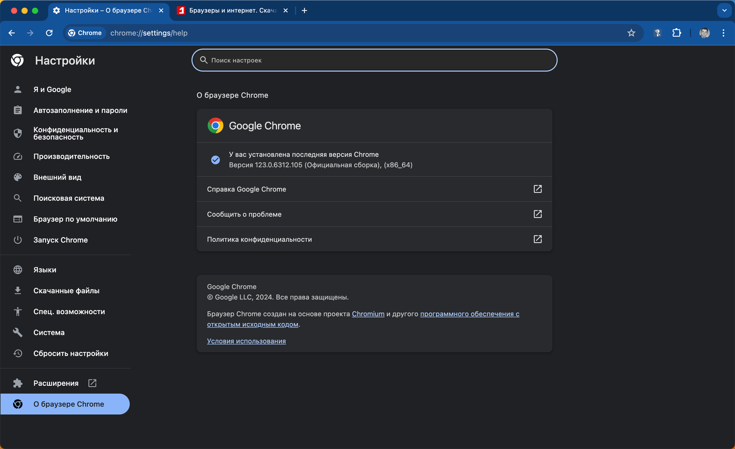 Перейдите по адресу chrome://settings/help в настольной версии Chrome, чтобы проверить статус обновления. Chrome считается обновленным, если у вас установлена одна из следующих версий: 123.0.6312.105, 123.0.6312.106 или 123.0.6312.107.