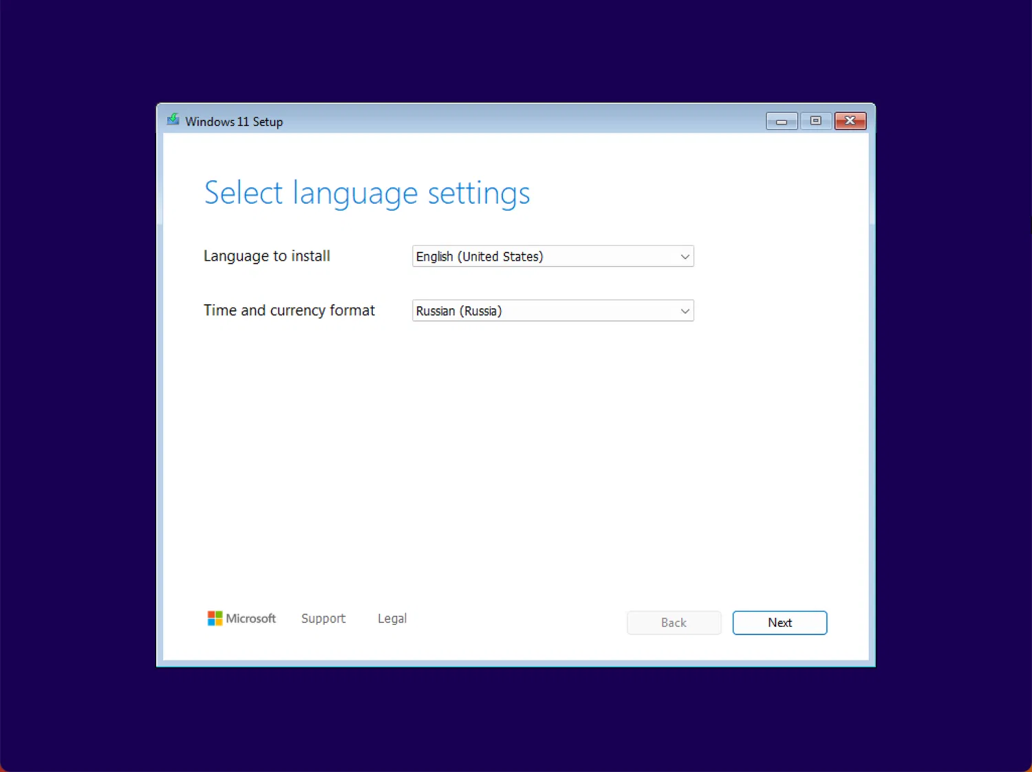 Примечание. Установка системы осуществляется на английском языке English (United States). После установки воспользуйтесь инструкцией Как включить русский язык в Windows 11.