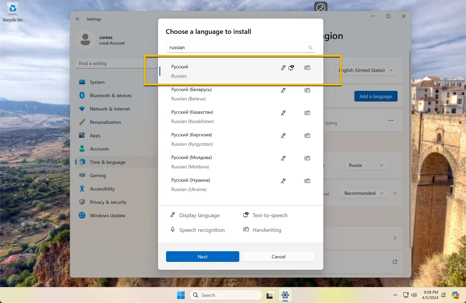 Чтобы включить русский язык в Windows 11 с английской локализацией (en-us), выполните следующие шаги: