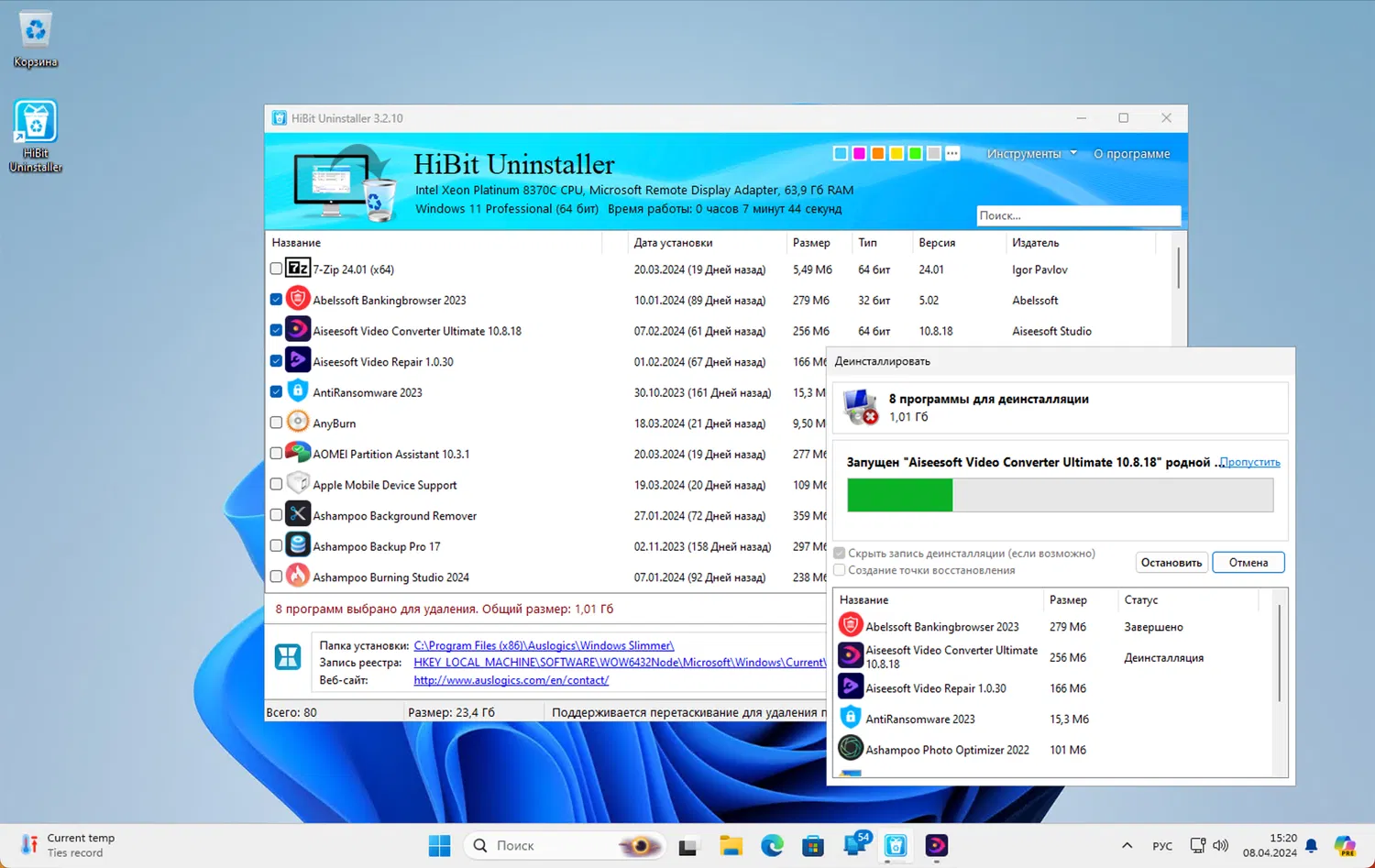- Пакетное удаление: Позволяет выбрать и удалить сразу несколько программ, что экономит время при очистке системы.