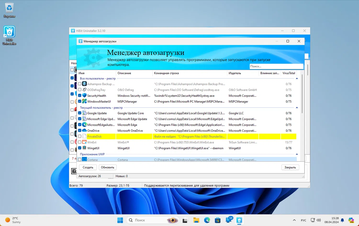 - Управление программами, запускающимися при старте системы: HiBit Uninstaller позволяет просматривать и управлять программами, которые автоматически запускаются при загрузке Windows, давая возможность ускорить время загрузки системы.