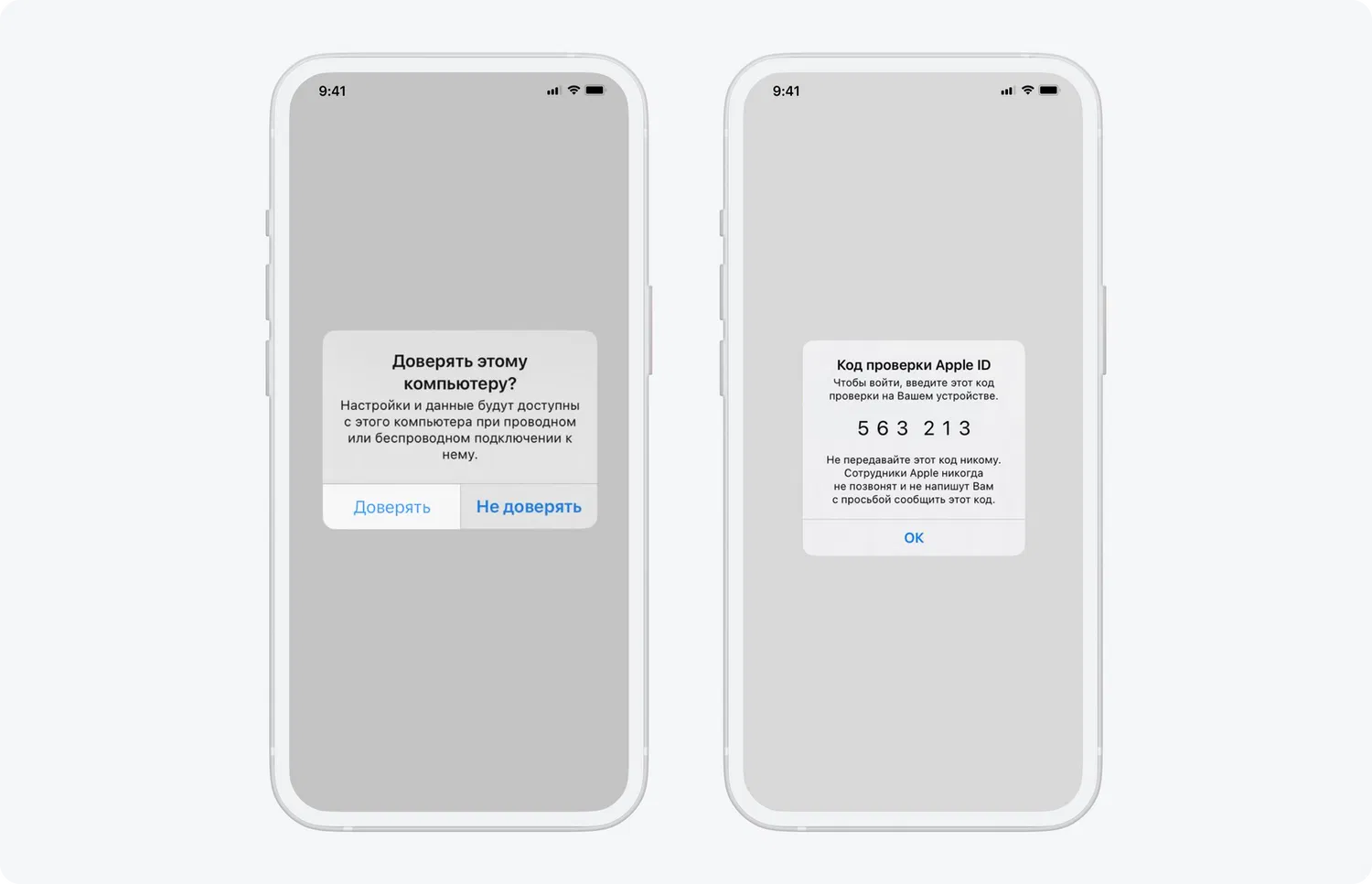 - Если на устройстве появится запрос на доверие этому компьютеру, подтвердите его.