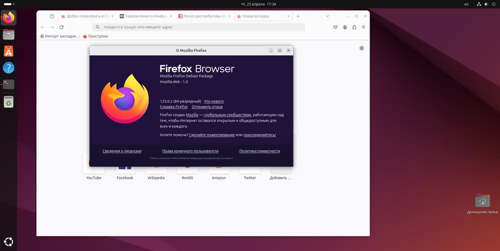 3. Удаляем предустановленную snap версию веб-браузера Firefox и устанавливаем официальную deb версию