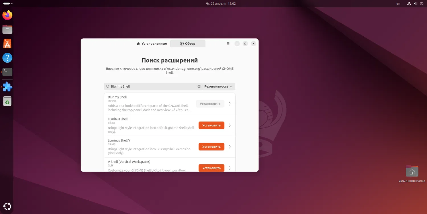 Для любителей визуальных эффектов предлагаем расширение Blur my Shell, которое добавляет размытие в интерфейс приложения GNOME, особенно заметное в режиме Показать приложения.