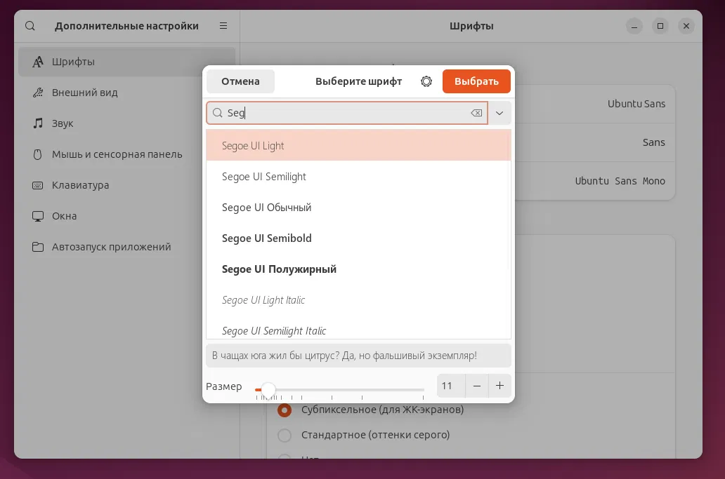 Для установки перечисленных шрифтов воспользуйтесь командой:
