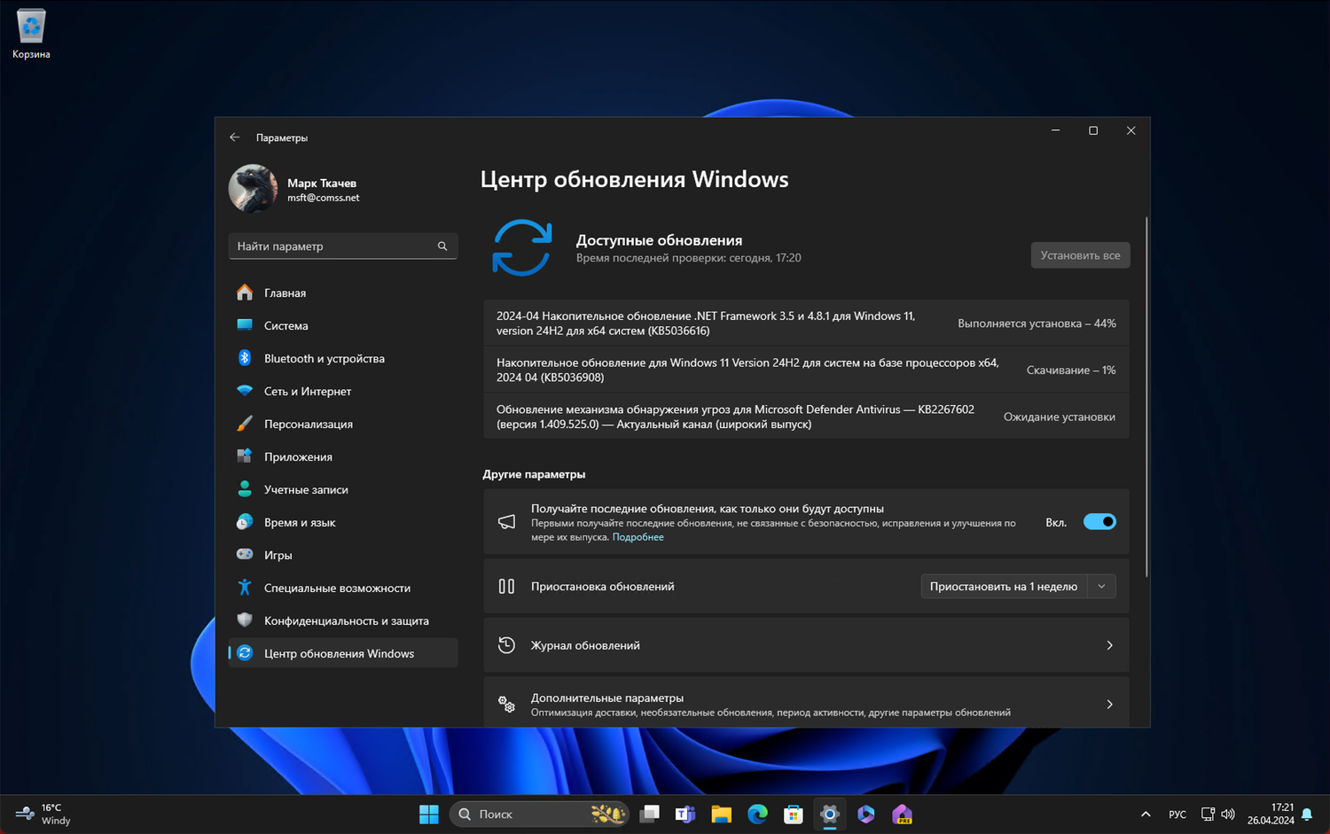 Установка через Центр обновления Windows