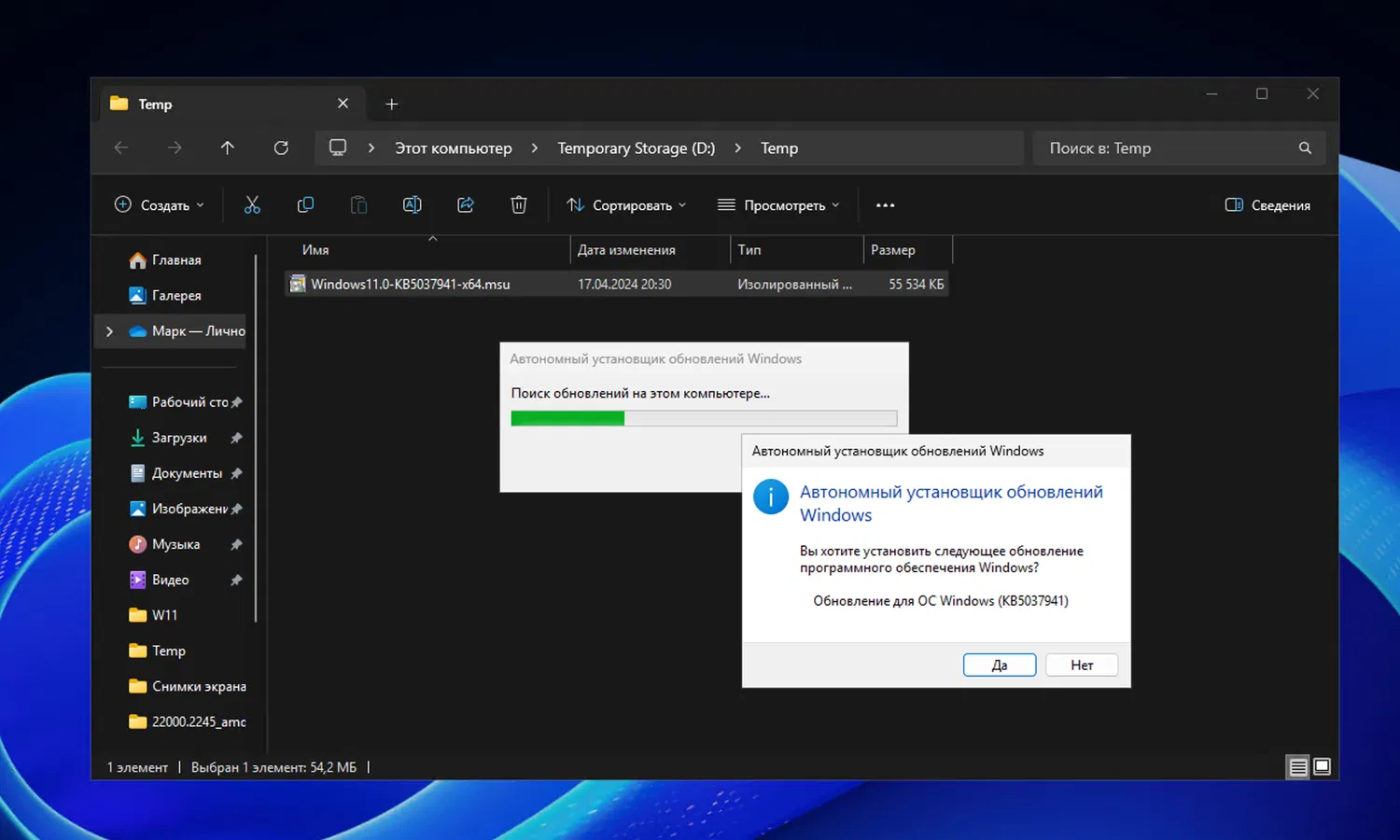 Чтобы установить пакет обновления MSU, вам достаточно дважды щелкнуть по нему.