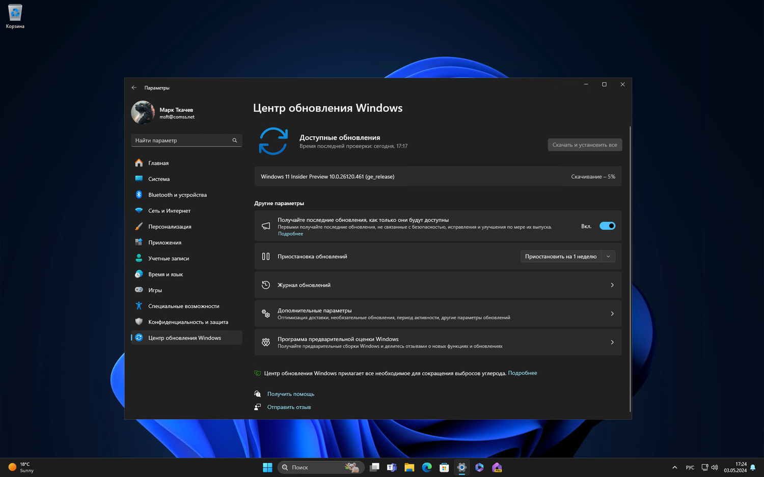 Примечание. Microsoft заблокировала установку обновлений для инсайдеров Windows 11 в России и Беларуси. Для установки обновления KB5037009 (Build 26120.461) вы можете использовать наши DNS-серверы: Установка инсайдерских сборок Windows 11 с помощью Comss.one DNS.