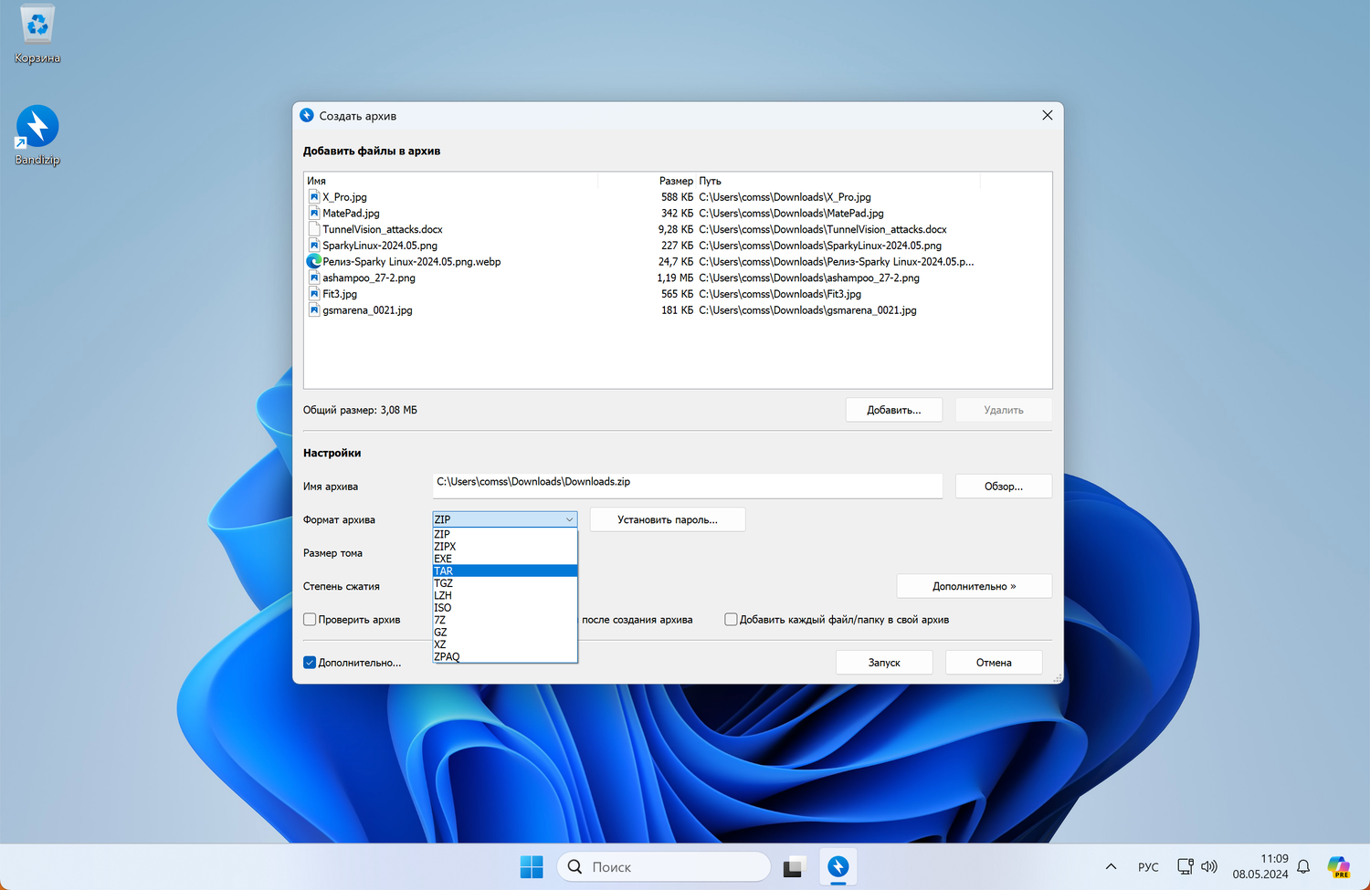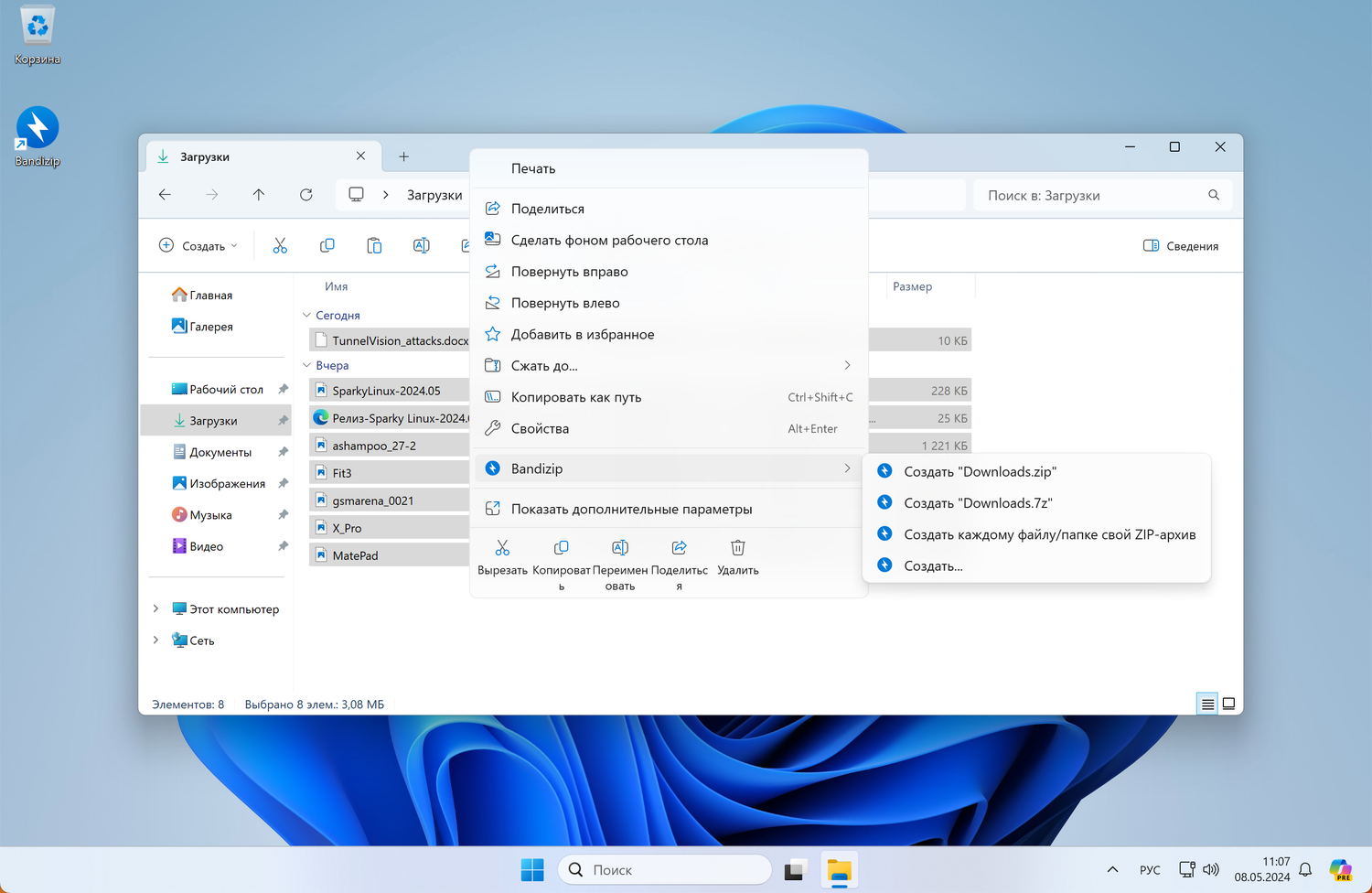 Основные функции Bandizip