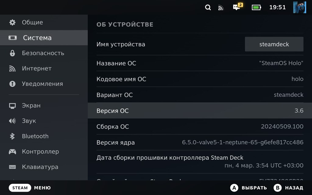 Затем следует проверить наличие обновлений и установить SteamOS 3.6.