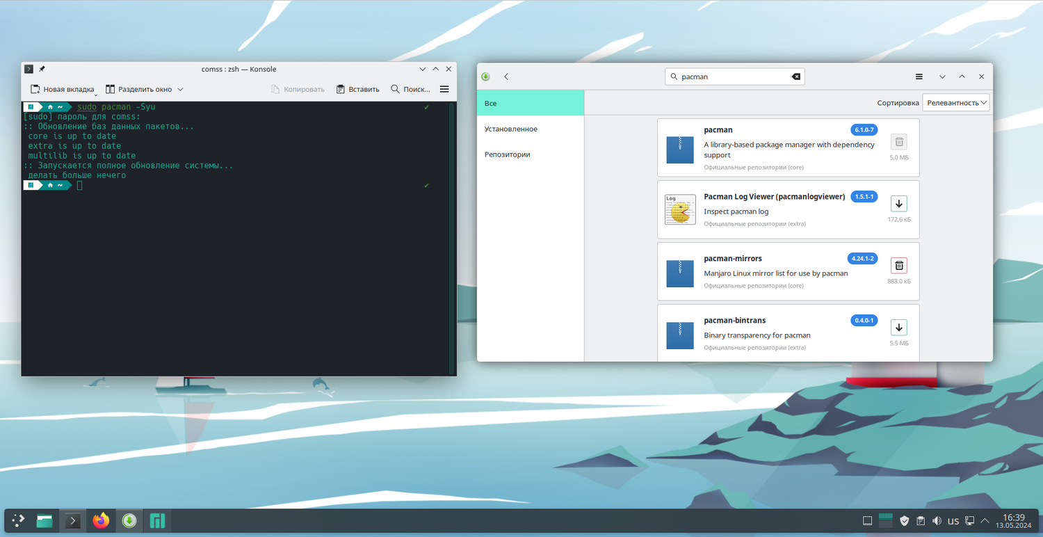 - Обновление менеджера пакетов Pacman до версии 6.1.0 и улучшение работы libpamac для более эффективной работы с системными обновлениями.