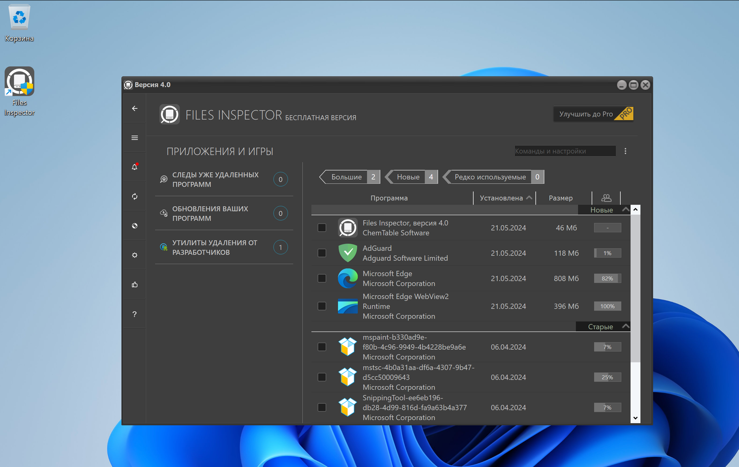 - Управление приложениями: Программа анализирует, какие приложения установлены на вашем компьютере и как часто они используются. На основе этих данных Files Inspector может рекомендовать удаление редко используемых программ для освобождения дополнительного места.