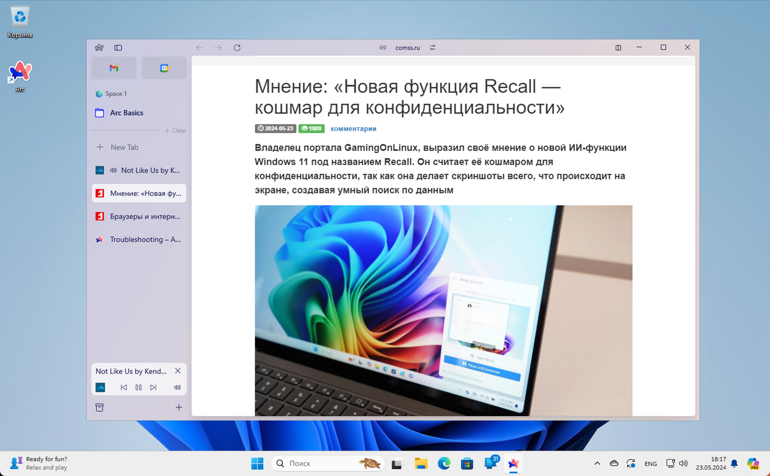 В последнем обновлении браузера Arc для Windows были добавлены новые функции, улучшающие мультимедийный опыт и управление пространствами рабочего окружения.