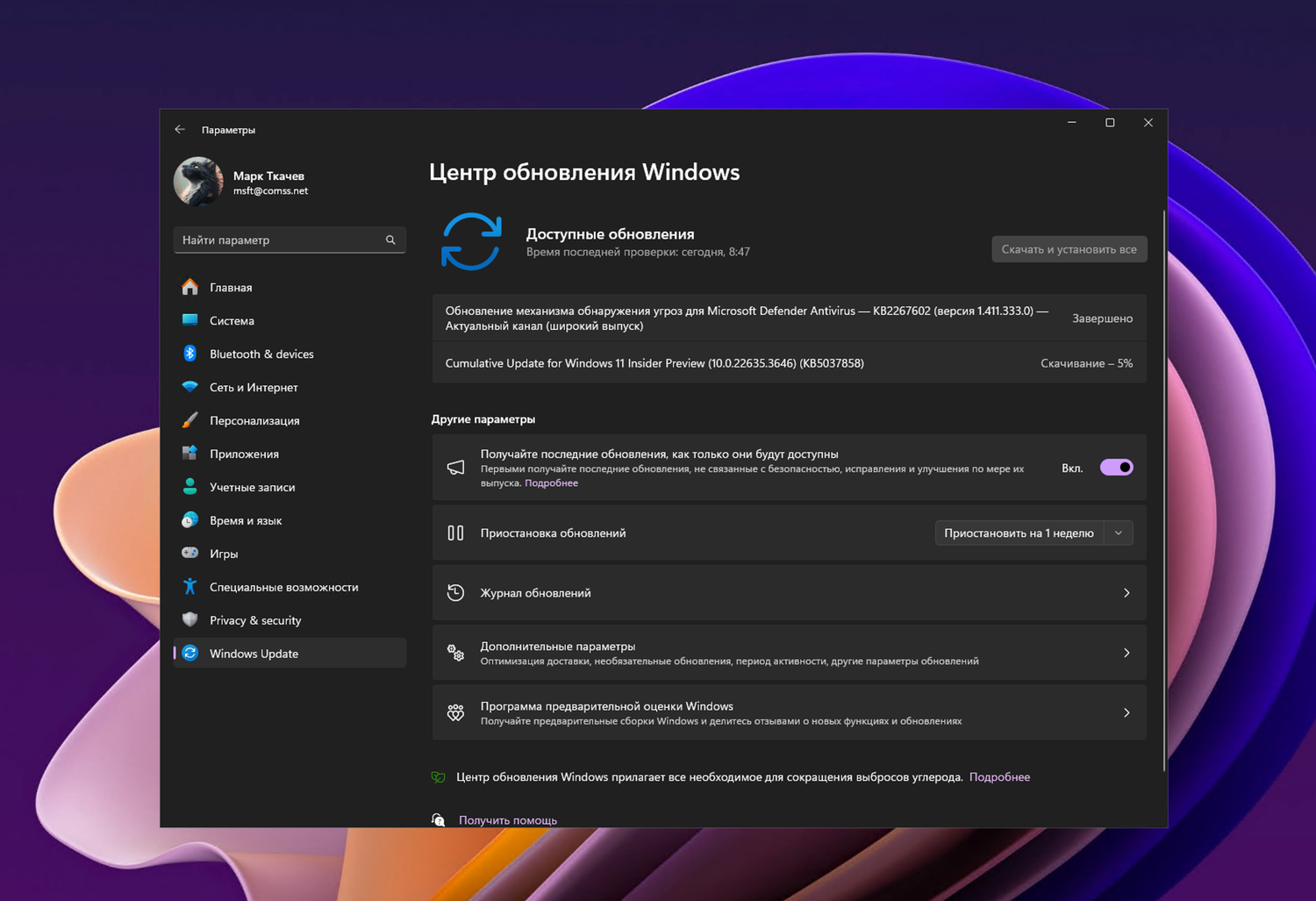 Примечание. Microsoft заблокировала установку обновлений для инсайдеров Windows 11 в России и Беларуси. Для установки Windows 11, Версия 23H2 (Сборка ОС 22635.3646) вы можете использовать наши DNS-серверы: Установка инсайдерских сборок Windows 11 с помощью Comss.one DNS.