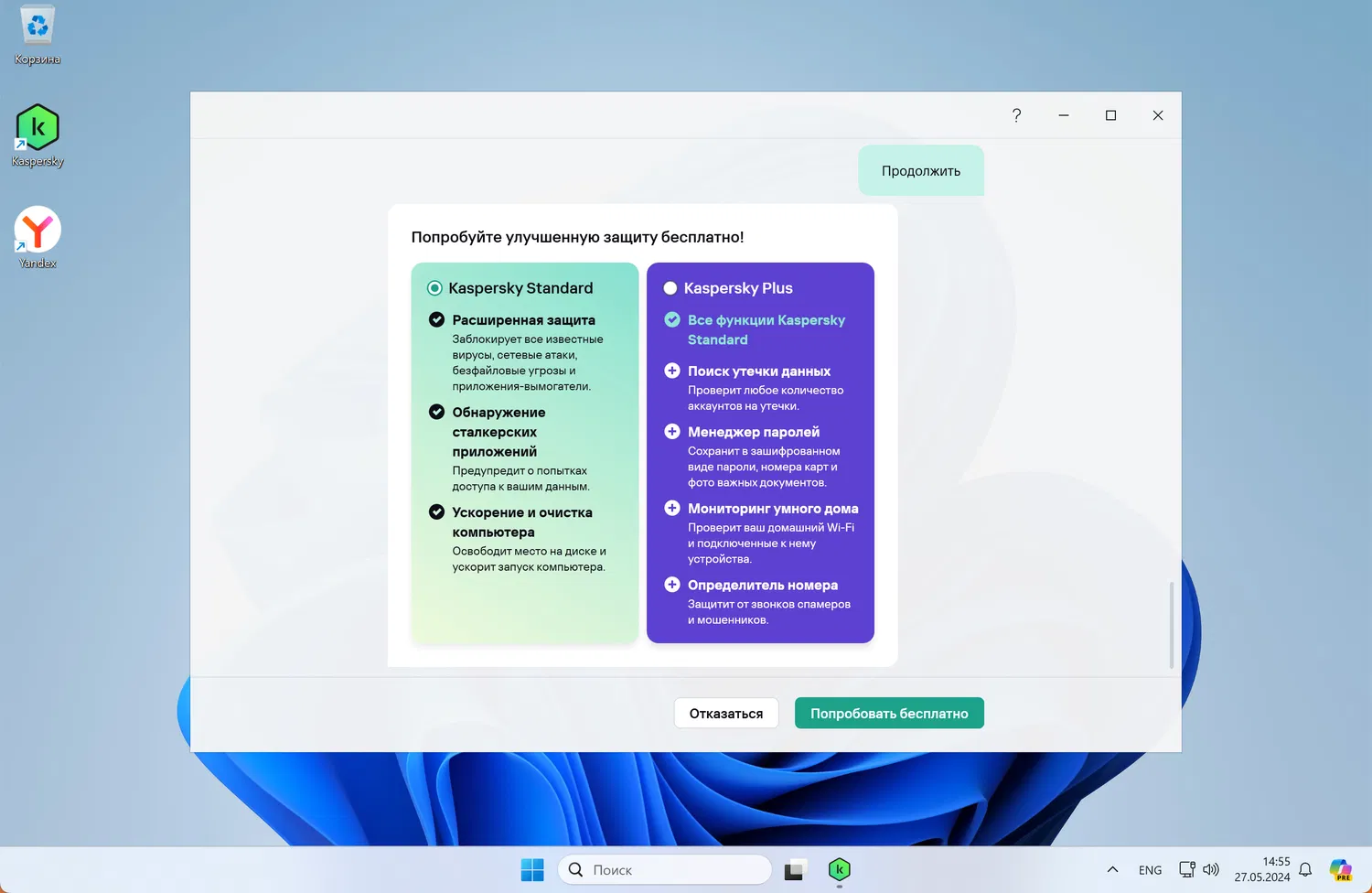 Также доступна возможность перехода на платные подписки, такие как Kaspersky Standard, Kaspersky Plus и Kaspersky Premium, которые предлагают расширенную защиту и дополнительные функции, такие как защита финансовых транзакций, управление приложениями и мониторинг сетевых активностей.