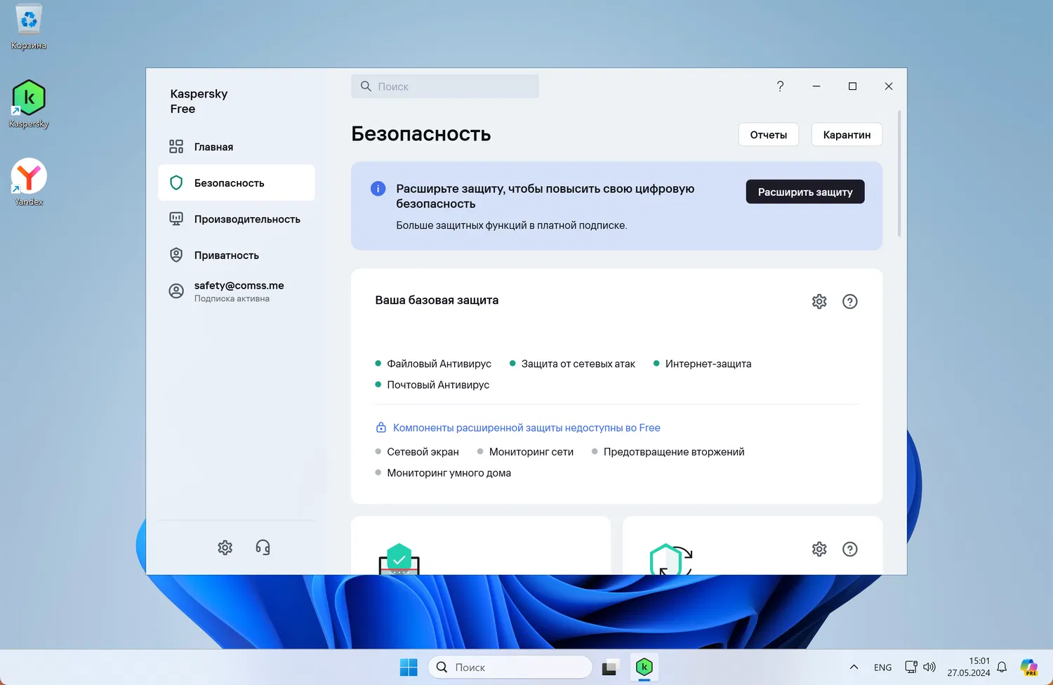Помимо стандартных функций, в Kaspersky Free реализованы инструменты для управления и настройки компонентов безопасности, что позволяет пользователям адаптировать антивирус под свои потребности.