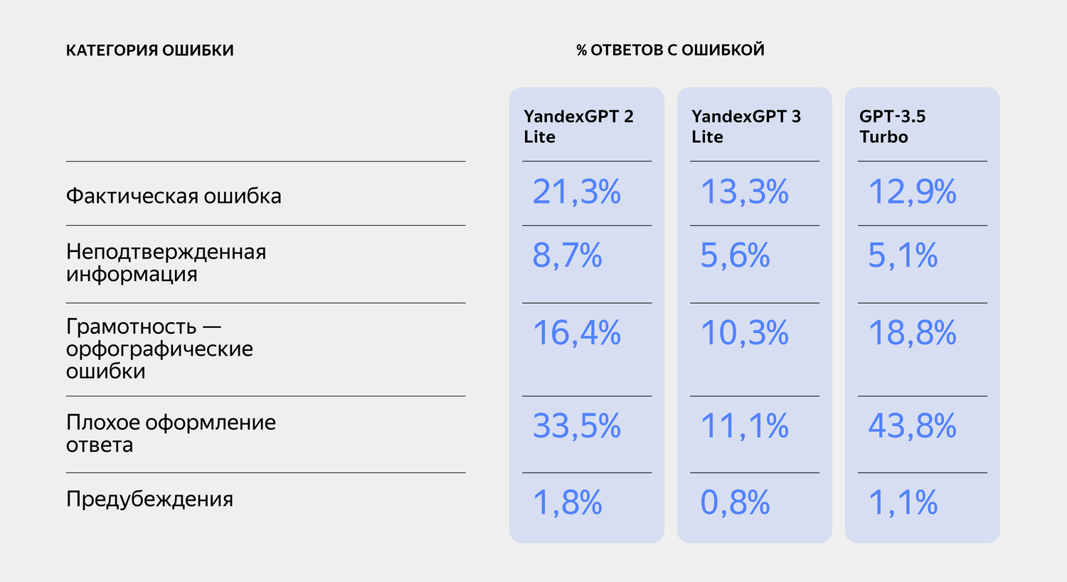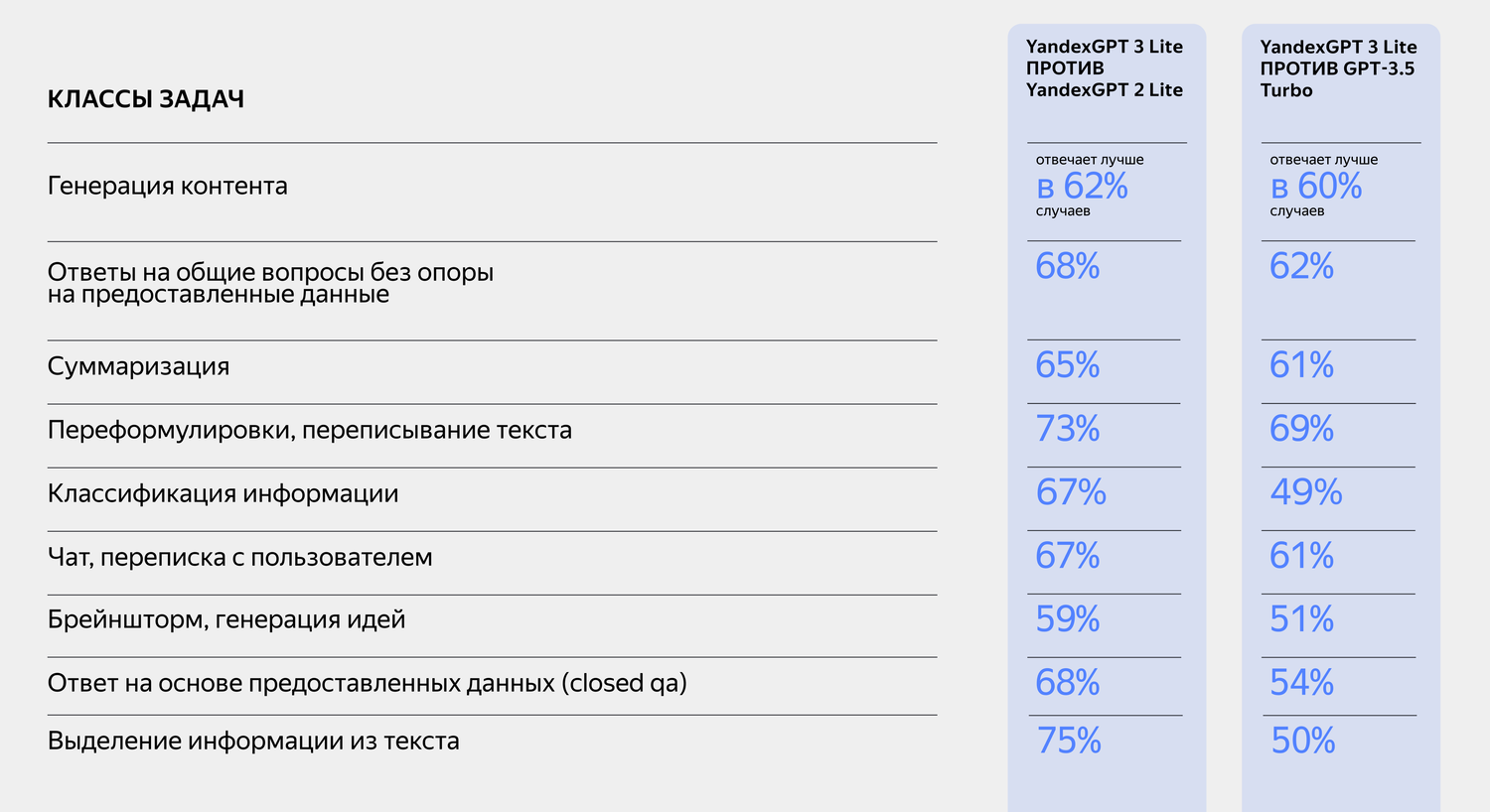 Эксперты также оценили, как новая модель справляется с задачами классификации, генерации контента и ответами на вопросы. Кроме того, она допускает меньше орфографических и фактических ошибок.