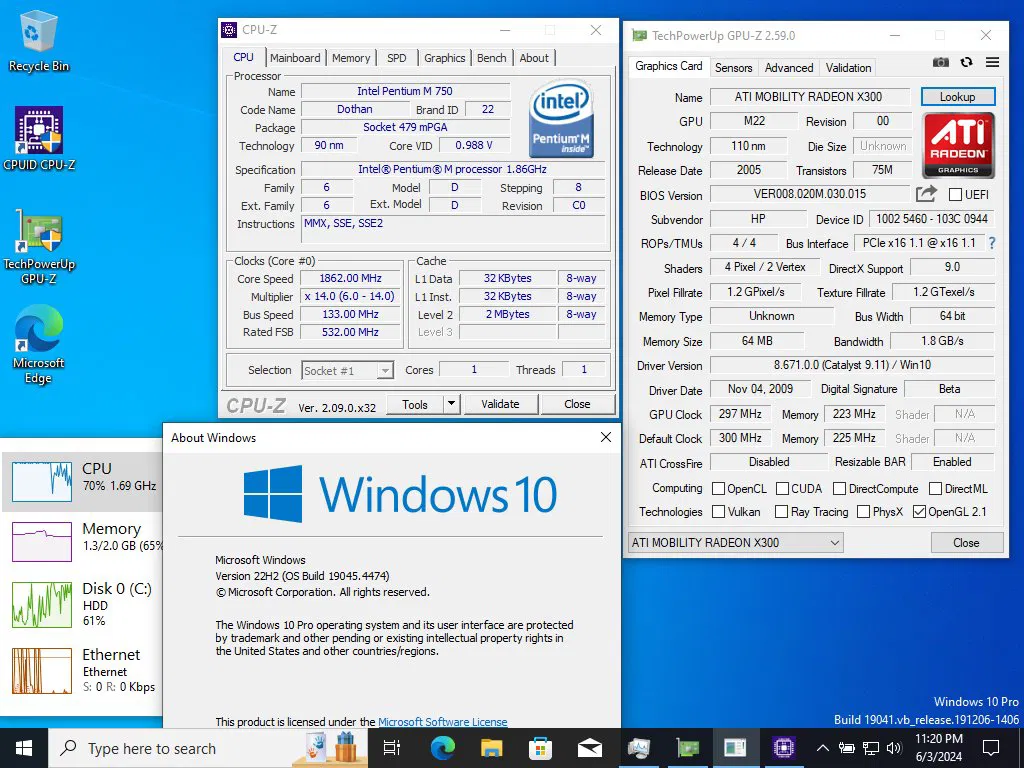 Считается, что процессоры Pentium M (Dothan) поддерживают максимум Windows 10, версия 1709 (Fall Creators Update), потому что более новые версии вызывают BSOD с ошибкой IRQL_NOT_LESS_OR_EQUAL.