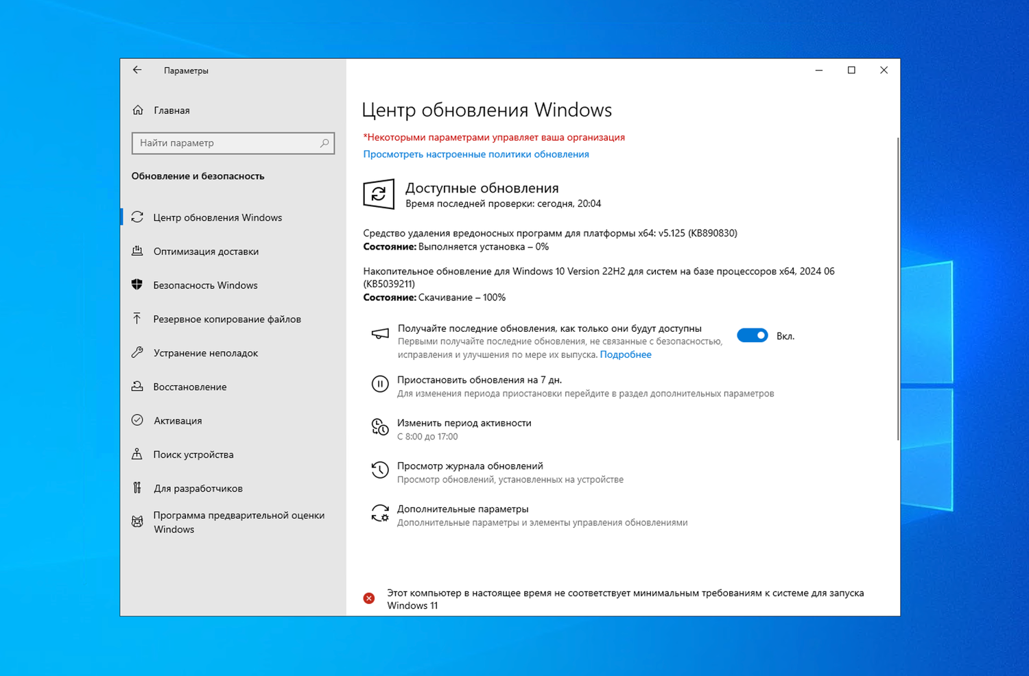 Установка через Центр обновления Windows