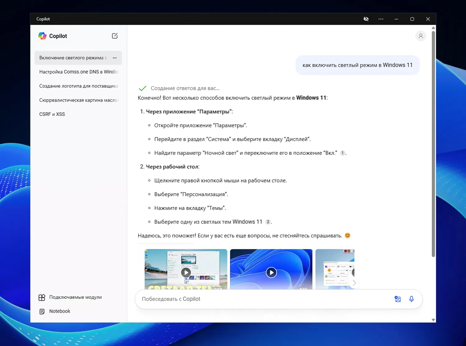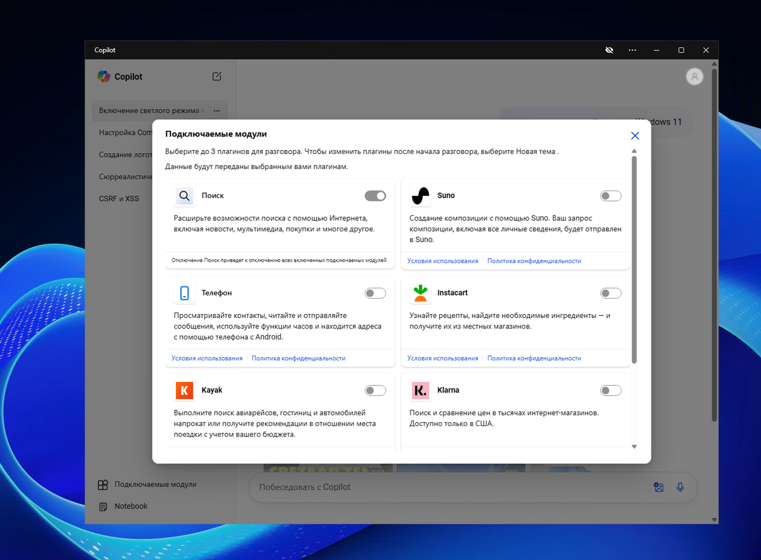Чат-бот Copilot непосредственно не упоминается, потому что эта функция будет зависеть от облака для анализа и предоставления ответов на практически любой тип вопросов. С другой стороны, функции, использующие Среду выполнения Windows Copilot, не будут зависеть от облака и смогут работать без подключения к интернету.