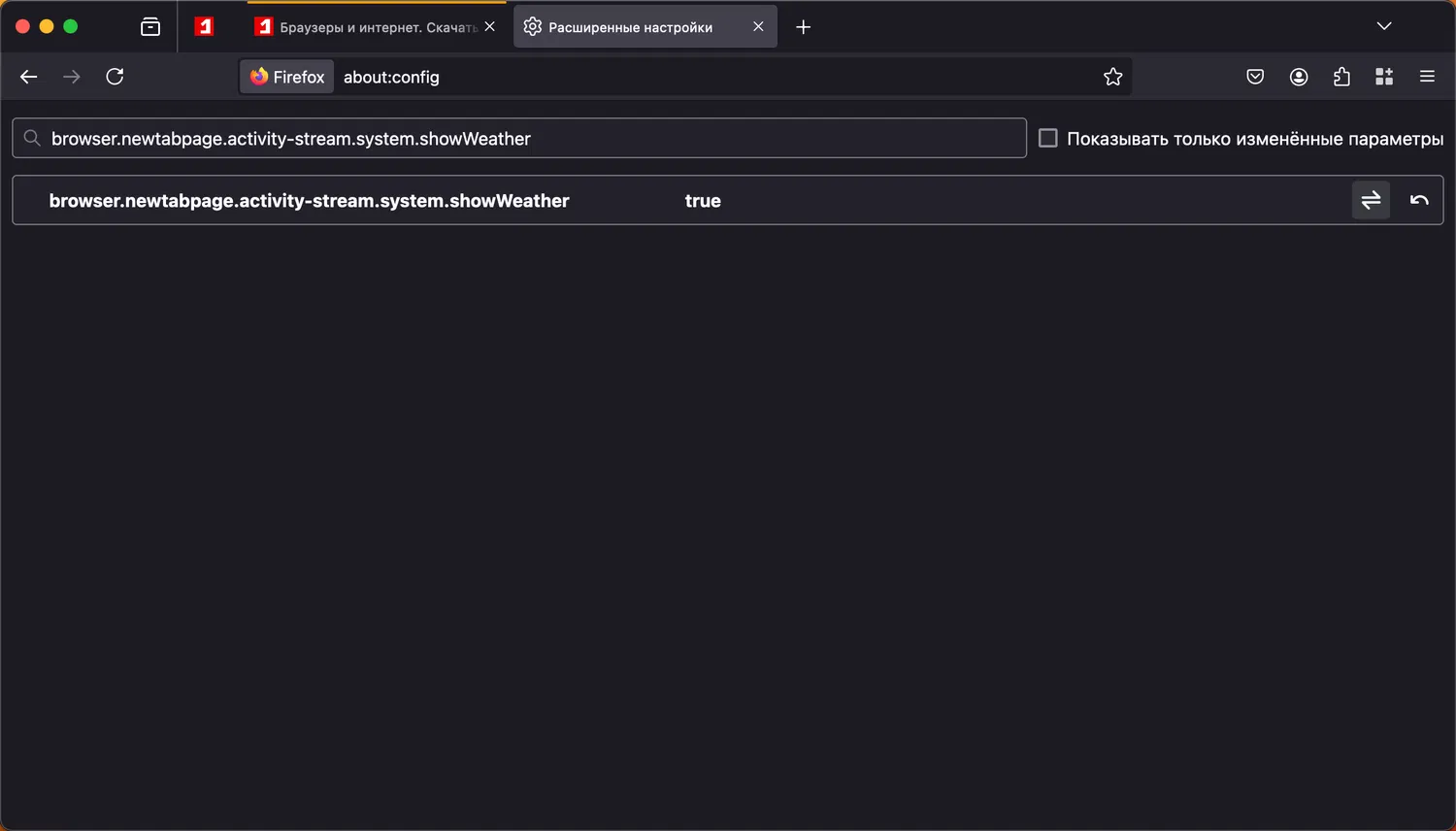 На данный момент виджет погоды и обои на новой вкладке в Firefox еще не готовы для массового использования, поэтому переключатель в основном интерфейсе настроек отсутствует.