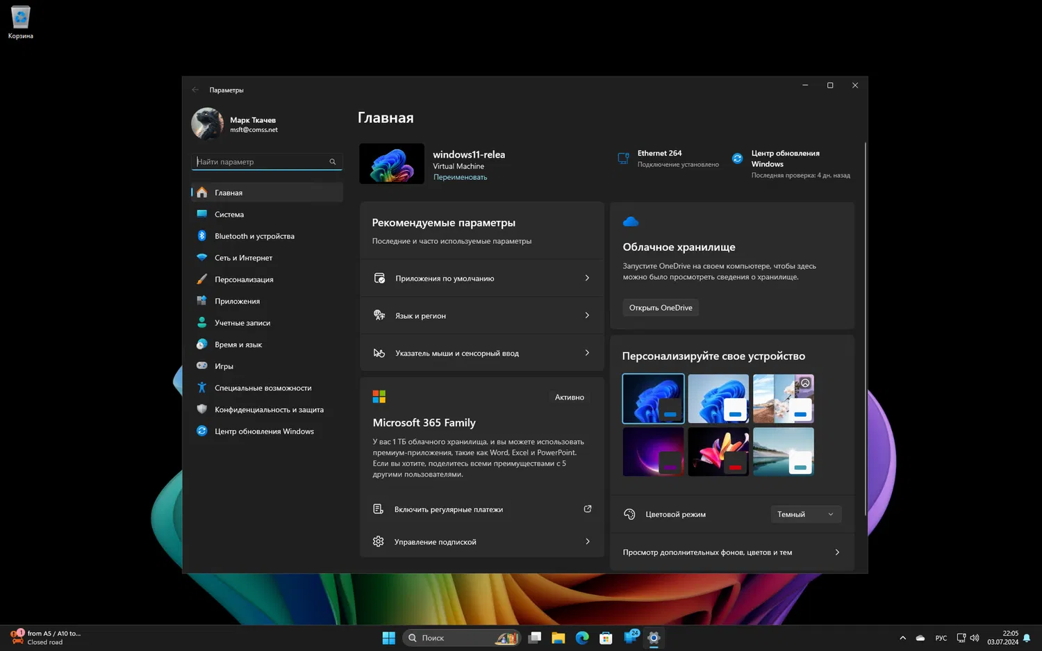 В версии Windows 11, версия 23H2 и выше, включая Windows 11, версия 24H2, в приложении «Параметры» появилась новая страница «Главная» с интерактивными карточками:
