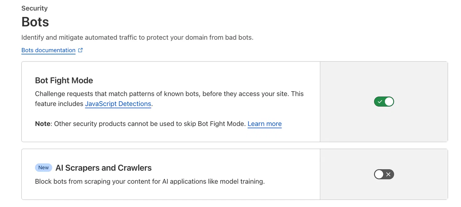 Чтобы воспользоваться новой функцией, пользователям нужно зайти в настройки безопасности (Security) своего аккаунта на Cloudflare и перейти в раздел «Боты» (Bots). Там можно найти опцию, которая позволяет блокировать ИИ-ботов всего одним нажатием. Cloudflare утверждает, что их алгоритмы способны выявлять даже тех роботов, которые маскируются под обычных пользователей.