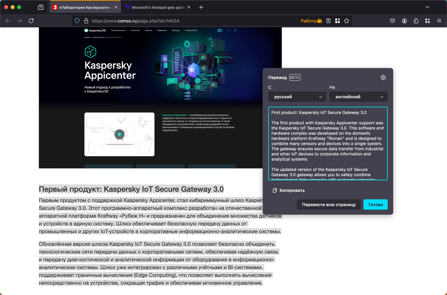 Firefox откроет небольшое всплывающее окно. Перевод может занять некоторое время, прежде чем станет доступен.