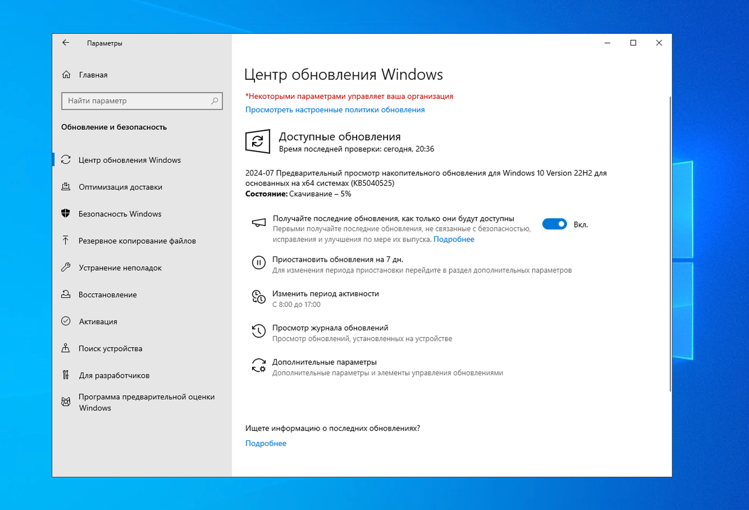 Обновлено: 24.07.2024. Обновление KB5040525 (Build 19045.4717) Preview для Windows 10, версия 22H2 доступно для установки в Центре обновления Windows как «необязательное исправление» и для ручной загрузки в Каталоге Центра обновления Майкрософт.