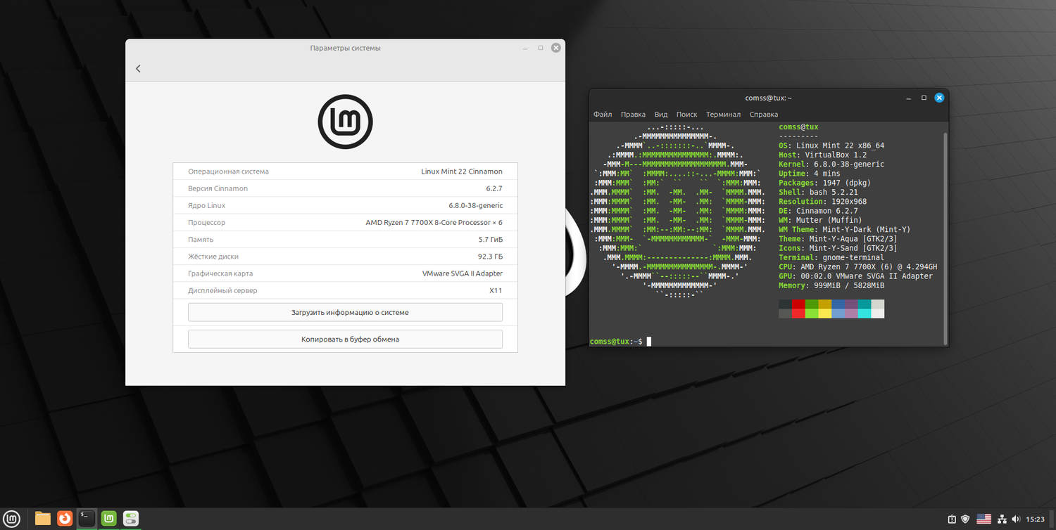 Linux Mint 22 использует ядро версии 6.8, что обеспечивает совместимость с новейшим оборудованием и технологиями.