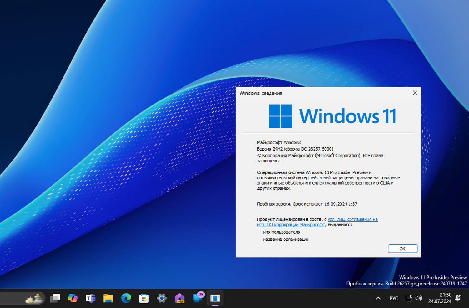 Полный номер сборки: 10.0.26257.5000.ge_prerelease.240719-1747
