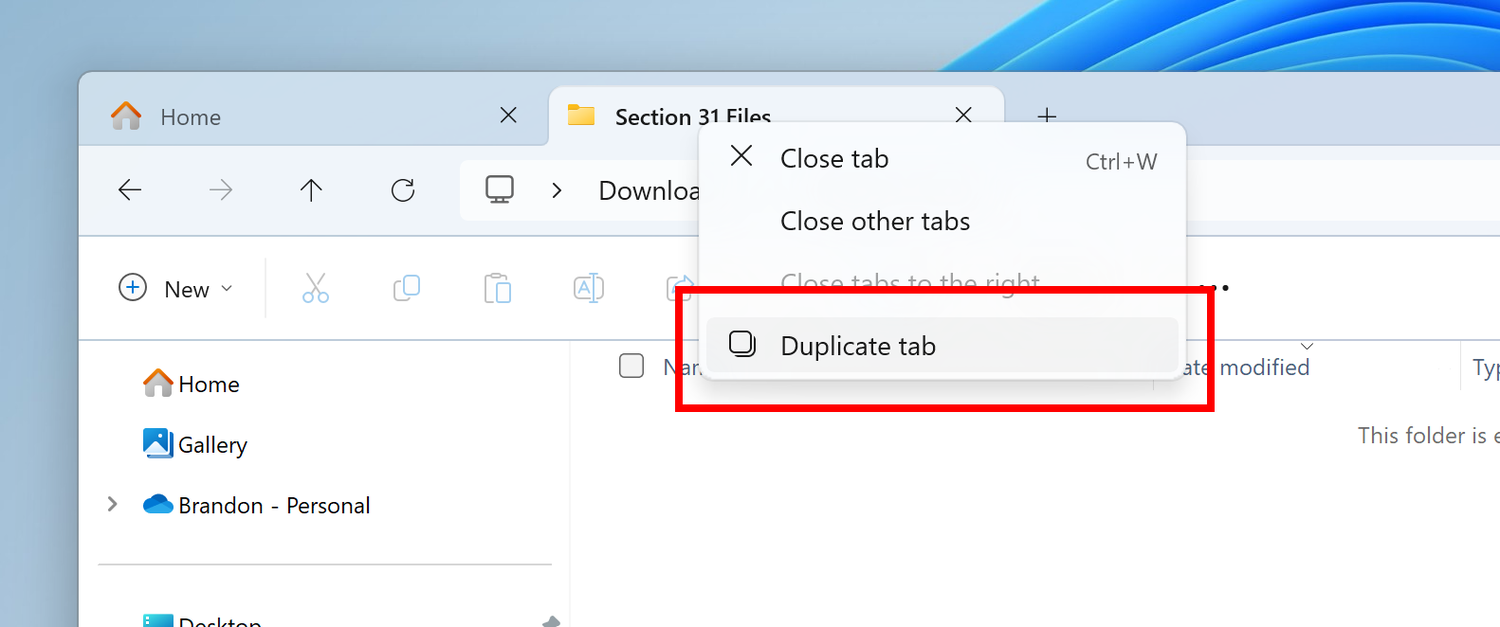 - Добавлена возможность дублировать вкладку, щелкнув правой кнопкой мыши на вкладке в Проводнике.