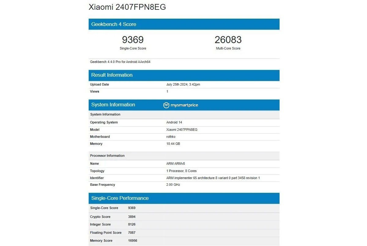 Xiaomi 14T Pro показал впечатляющие результаты: 9,369 баллов в одноядерном тесте и 26,083 балла в многоядерном тесте. Важно отметить, что тестирование проводилось с использованием версии Geekbench 4.4 для Android, а не более новой версии 6.x. Поэтому результаты не могут быть напрямую сопоставлены с тестами, проведенными на других версиях.