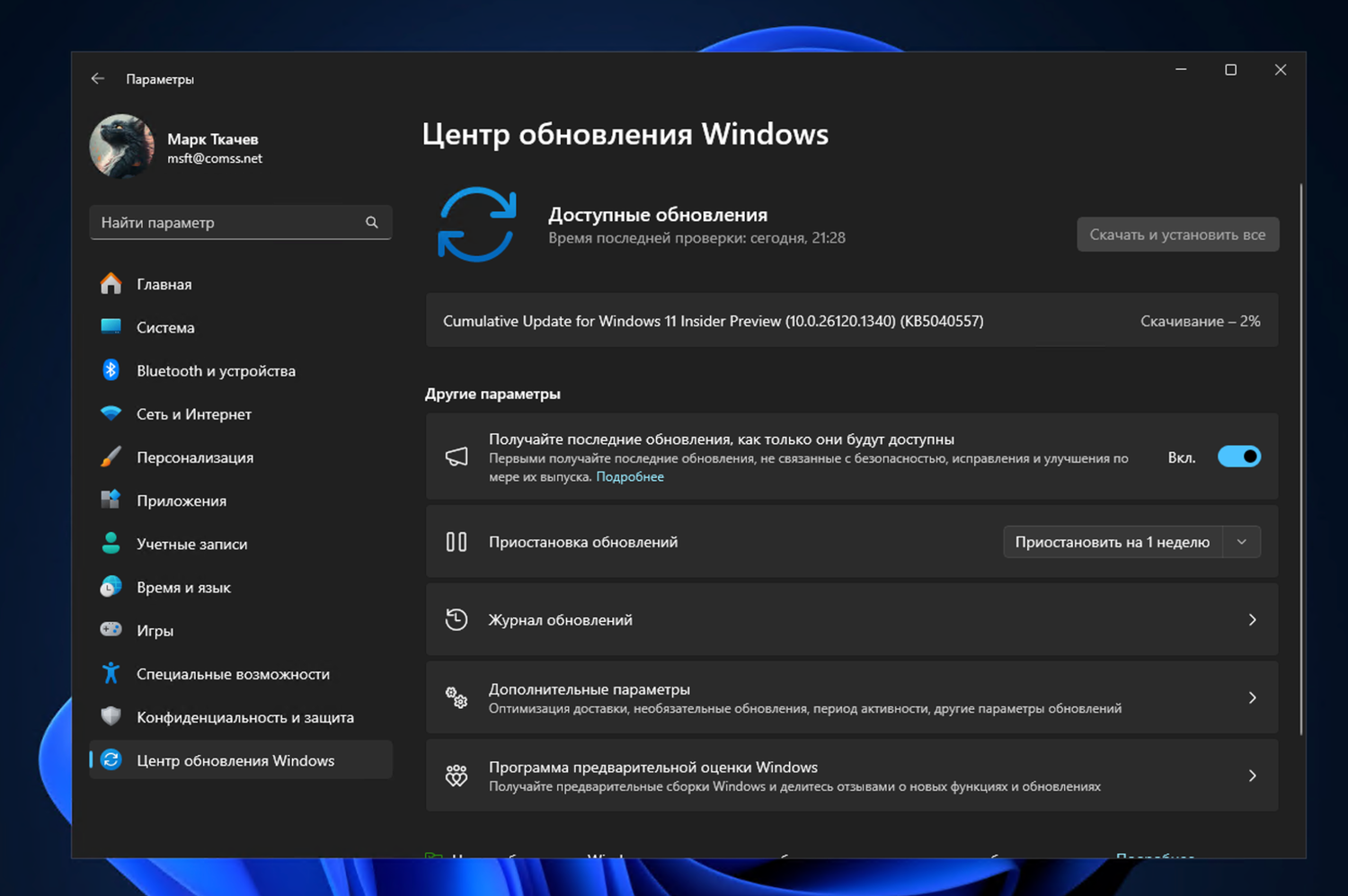 Примечание. Microsoft заблокировала установку обновлений для инсайдеров Windows 11 в России и Беларуси. Для установки обновления KB5040557 (Build 26120.1340) вы можете использовать наши DNS-серверы: Установка инсайдерских сборок Windows 11 с помощью Comss.one DNS.