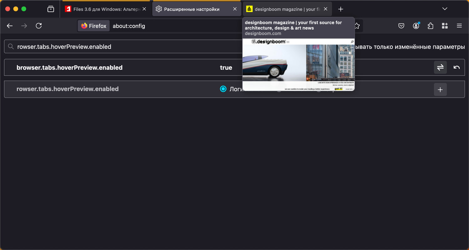 - Найдите параметр browser.tabs.hoverPreview.enabled