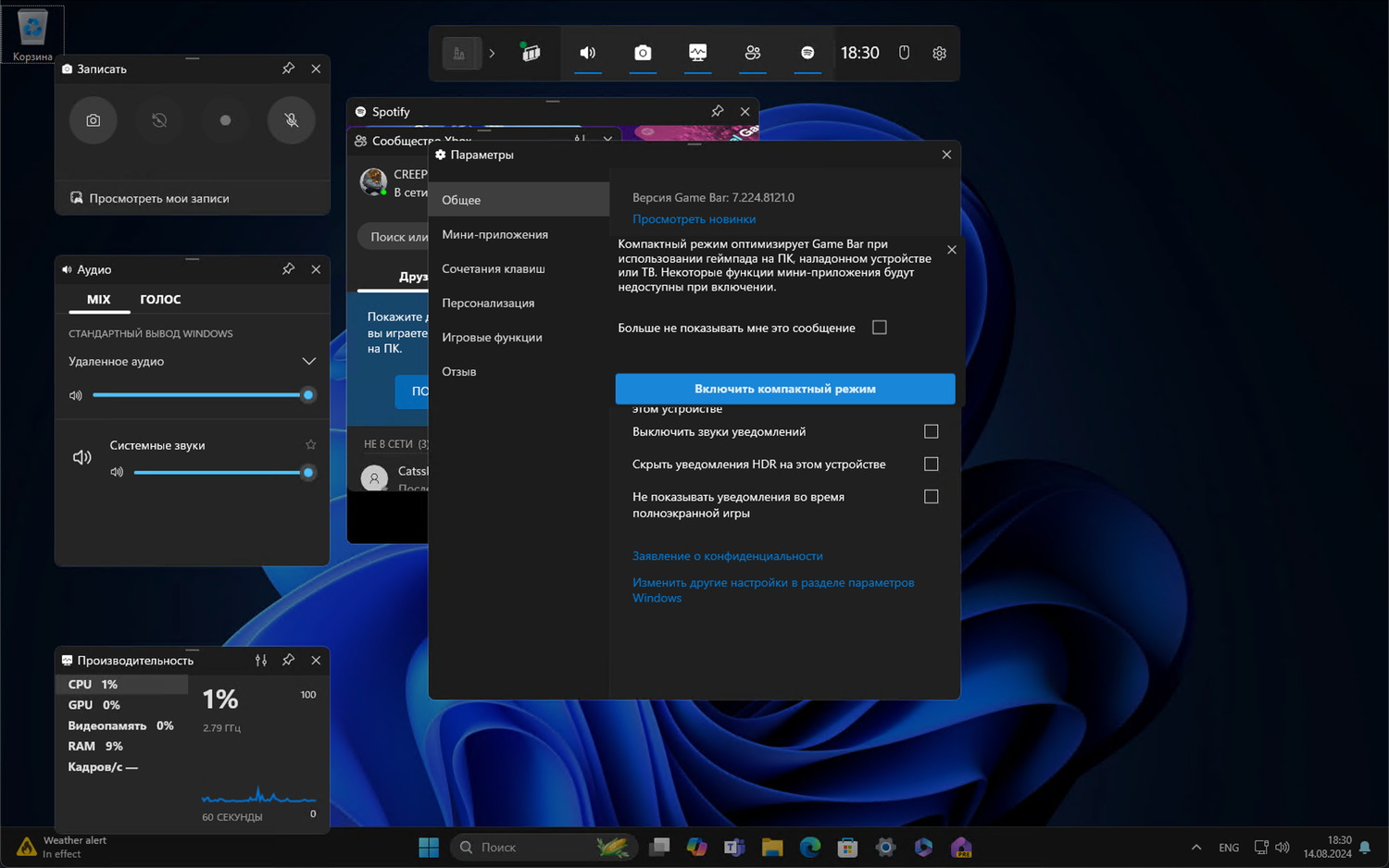 Компактный режим Game Bar был создан для улучшения взаимодействия с интерфейсом на устройствах с небольшими экранами и для удобства использования контроллера. Новый режим упрощает доступ к основным функциям и виджетам, чтобы пользователи могли быстрее находить нужную информацию и управлять игровым процессом.