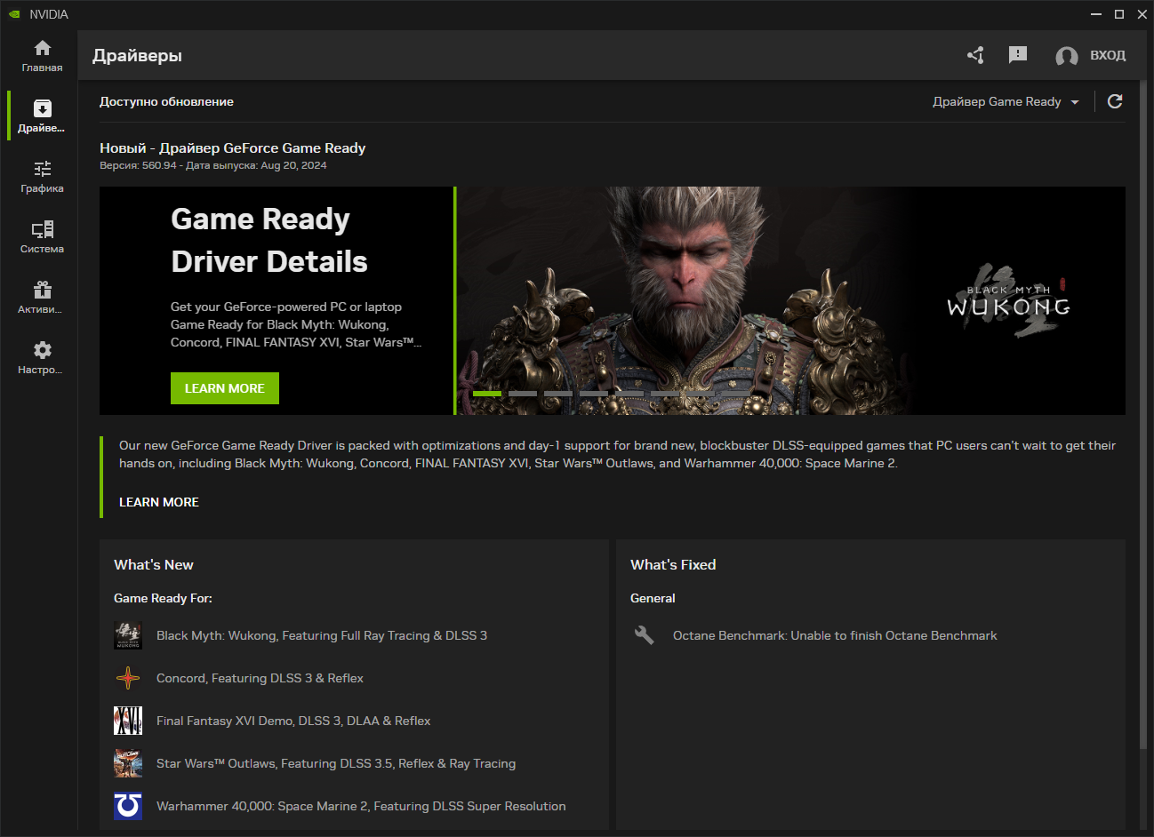 Что нового в NVIDIA GeForce Game Ready 560.94 WHQL