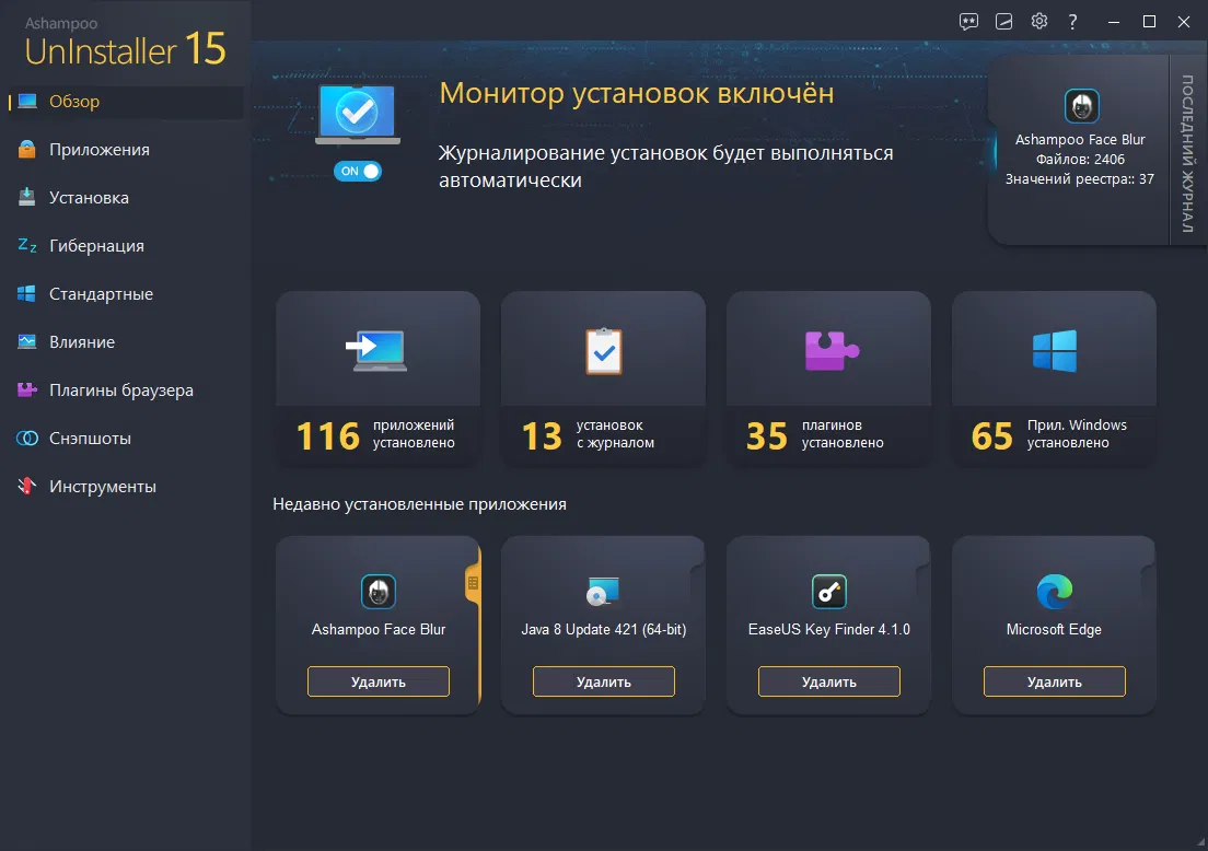 Ashampoo UnInstaller 15 предлагает улучшенные инструменты для удаления программ и очистки системы, а также включает новый модуль для защиты конфиденциальности. В новой версии особое внимание уделено производительности и удобству использования, что делает программу подходящей даже для менее мощных компьютеров.