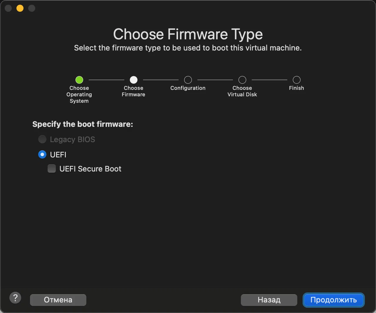 После того как параметры сохранены, вам будет предложено настроить параметры виртуальной машины: