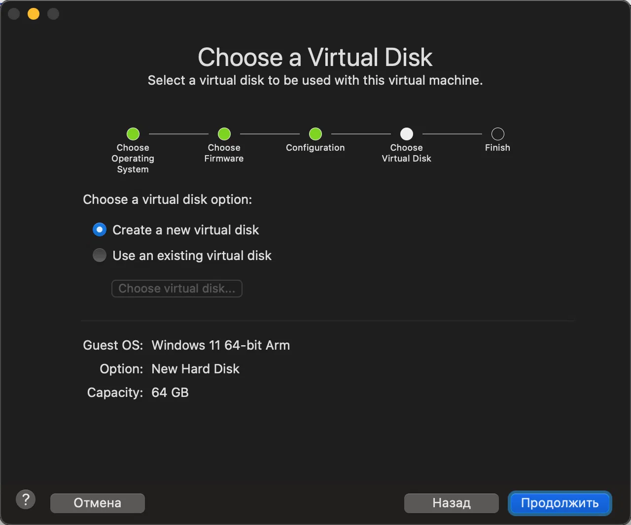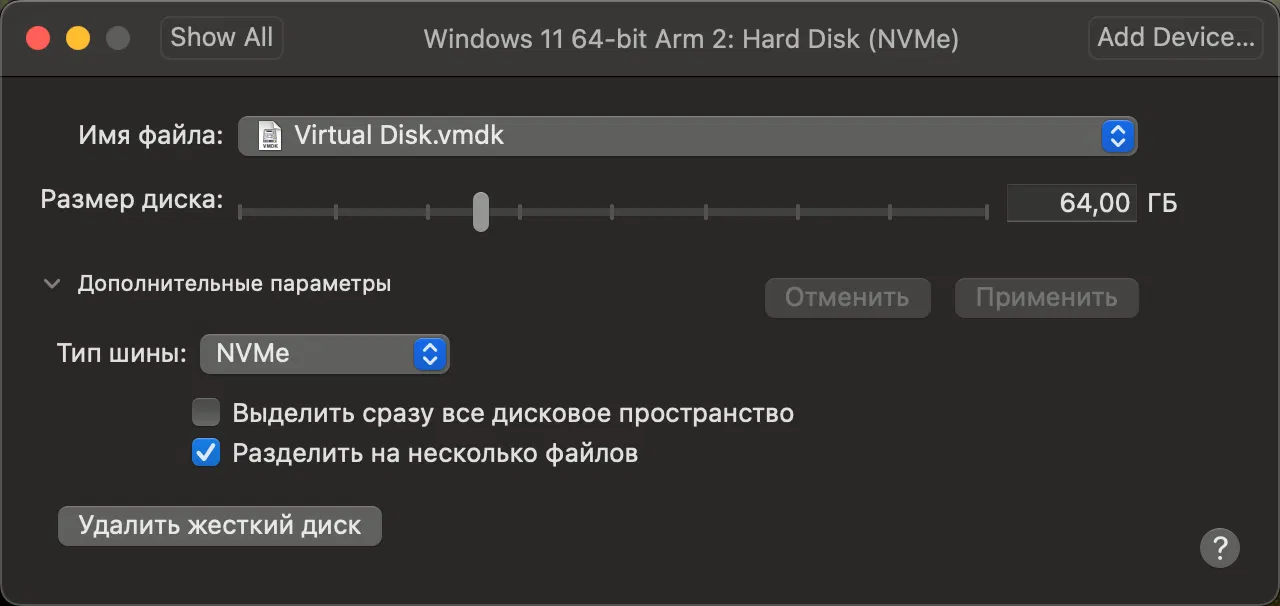 - Диск и файловая система: Минимально рекомендуется выделить 64 ГБ, но если вы планируете активно использовать Windows, лучше выбрать больший объем.