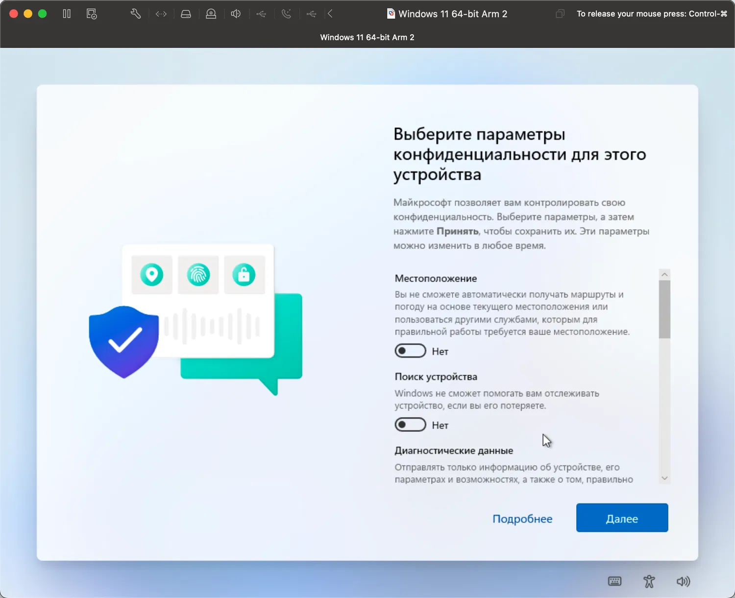 - Настройте параметры конфиденциальности и завершите установку, следуя инструкциям на экране.