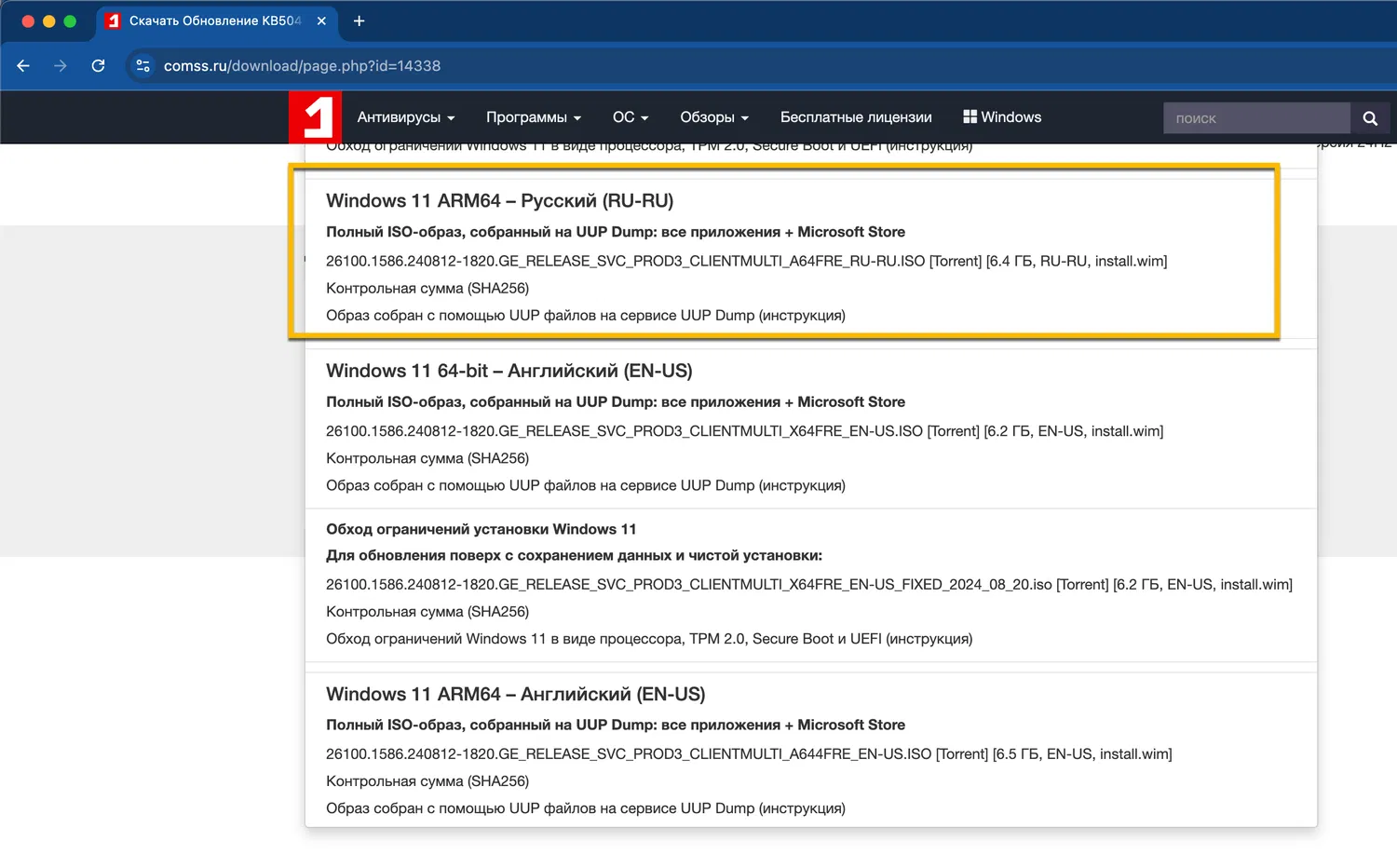 - Прямое скачивание ISO-образа: Вы также можете скачать готовый ISO-образ Windows 11 ARM на нашем сайте. Этот метод быстрее и удобнее для большинства пользователей.