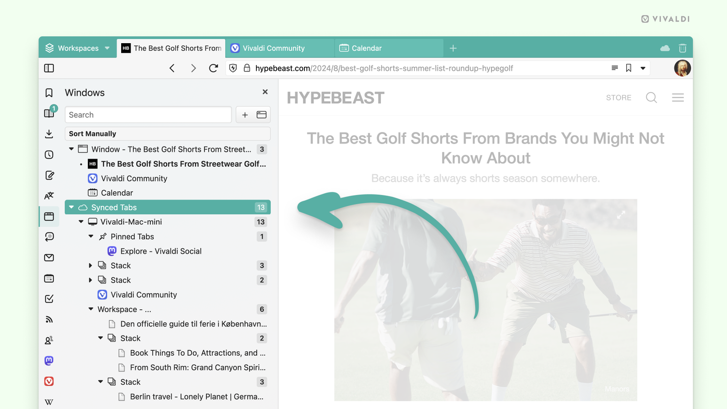Если вы используете Vivaldi на нескольких устройствах, то данная функция будет особенности полезна. В Vivaldi 6.9 пользователи получают новый структурированный обзор всех открытых вкладок прямо в панели окна. Открыв панель, вы сможете увидеть, какие вкладки открыты на других устройствах в древовидной структуре. Новая структура разделяет устройства, рабочие пространства и группы вкладок.