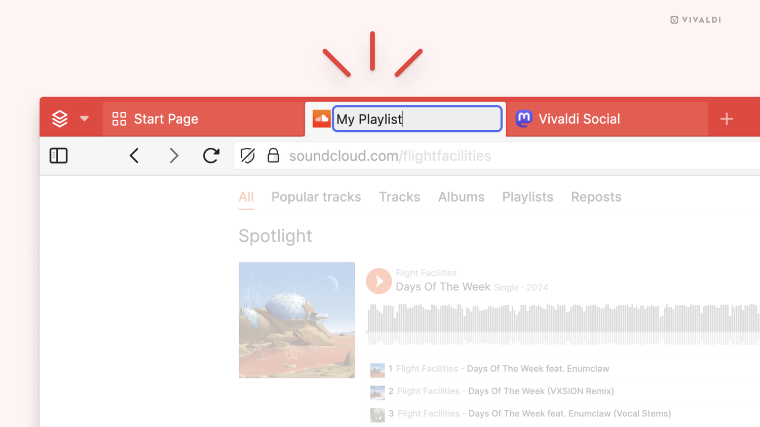 В Vivaldi 6.9 появилась функция, предназначенная для помощи в поддержании порядка. Теперь вы можете легко переименовывать свои вкладки и группы вкладок в осмысленные названия. Это может быть имя проекта, напоминание или что-то другое, что поможет вам лучше организоваться.